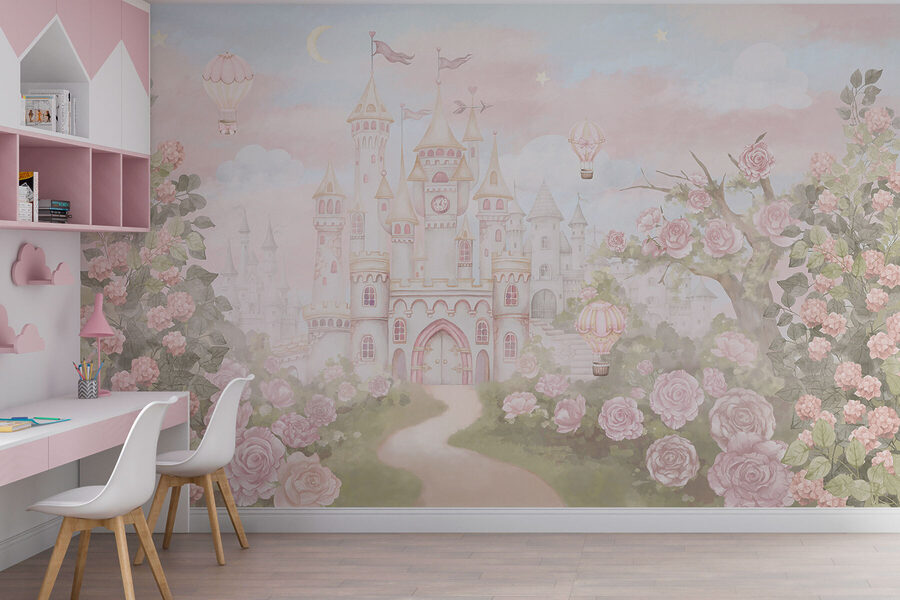 Imaginați-vă că intrați într-o cameră și sunteți purtați într-un castel de vis, înconjurat de trandafiri luxurianți și baloane cu aer cald plutitoare. Această pictură murală nu este doar decor – este o poveste. Perfect pentru cei care iubesc o notă de magie în spațiul lor, este ca și cum ați deschide o carte de basme de fiecare dată când intrați. Simțiți briza blândă în timp ce baloanele plutesc pe ceruri pastelate și lăsați blândețea florilor să vă transporte într-o pădure magică. Este genul de scenă care face ca o zi ploioasă să fie confortabilă, stârnind imaginația și visele dulci cu ochii deschiși.