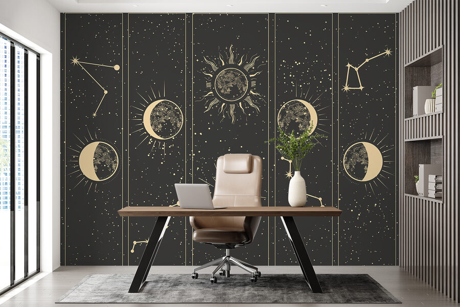 Imaginați-vă că pășiți într-o cameră în care simțiți că plutiți prin cosmos! Această pictură murală “Lună și stele” conferă spațiului dvs. o atmosferă de vis, perfectă pentru privitorii de stele și iubitorii de lună deopotrivă. Este ca și cum ai avea o bucată din cerul nopții chiar în casa ta – cu excepția vânturilor reci. Constelațiile capricioase dansează pe peretele tău, stârnind imaginația. Fie că stai întins pe canapea și meditezi la misterele vieții, fie că ai nevoie de calm cosmic după o zi agitată, această pictură murală este biletul tău către pacea stelară. Bucurați-vă de magie!