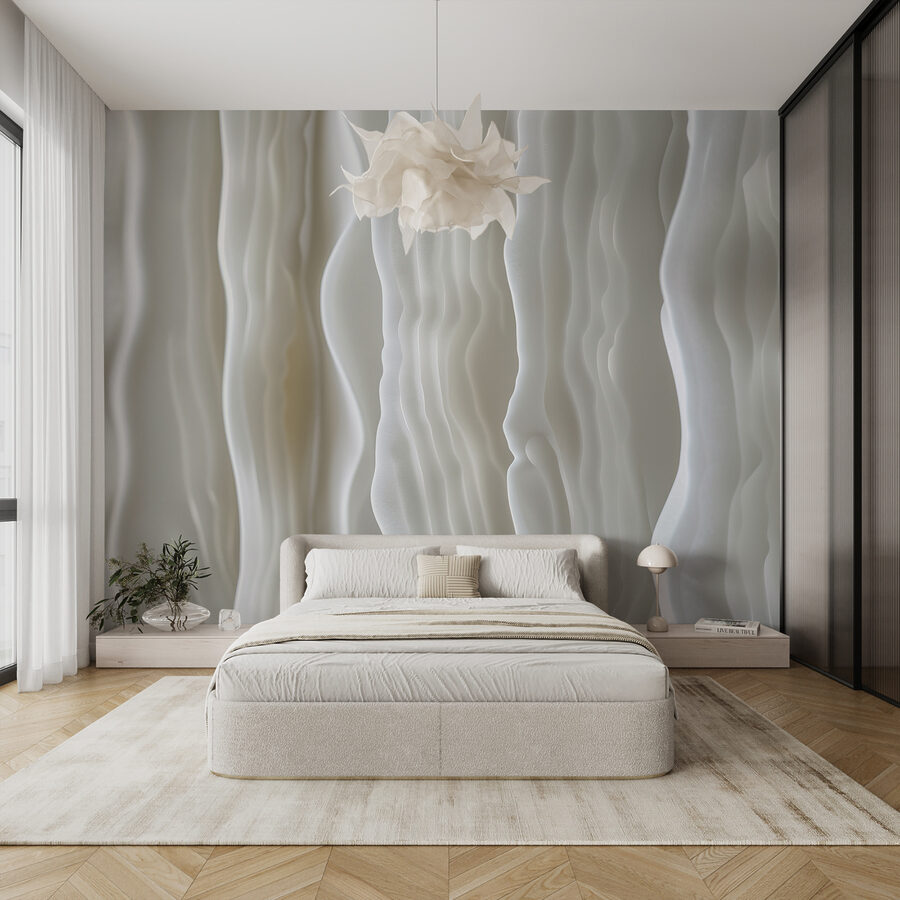 Fototapet Unduind alb, valuri abstracte moi. (SKU: w01542)