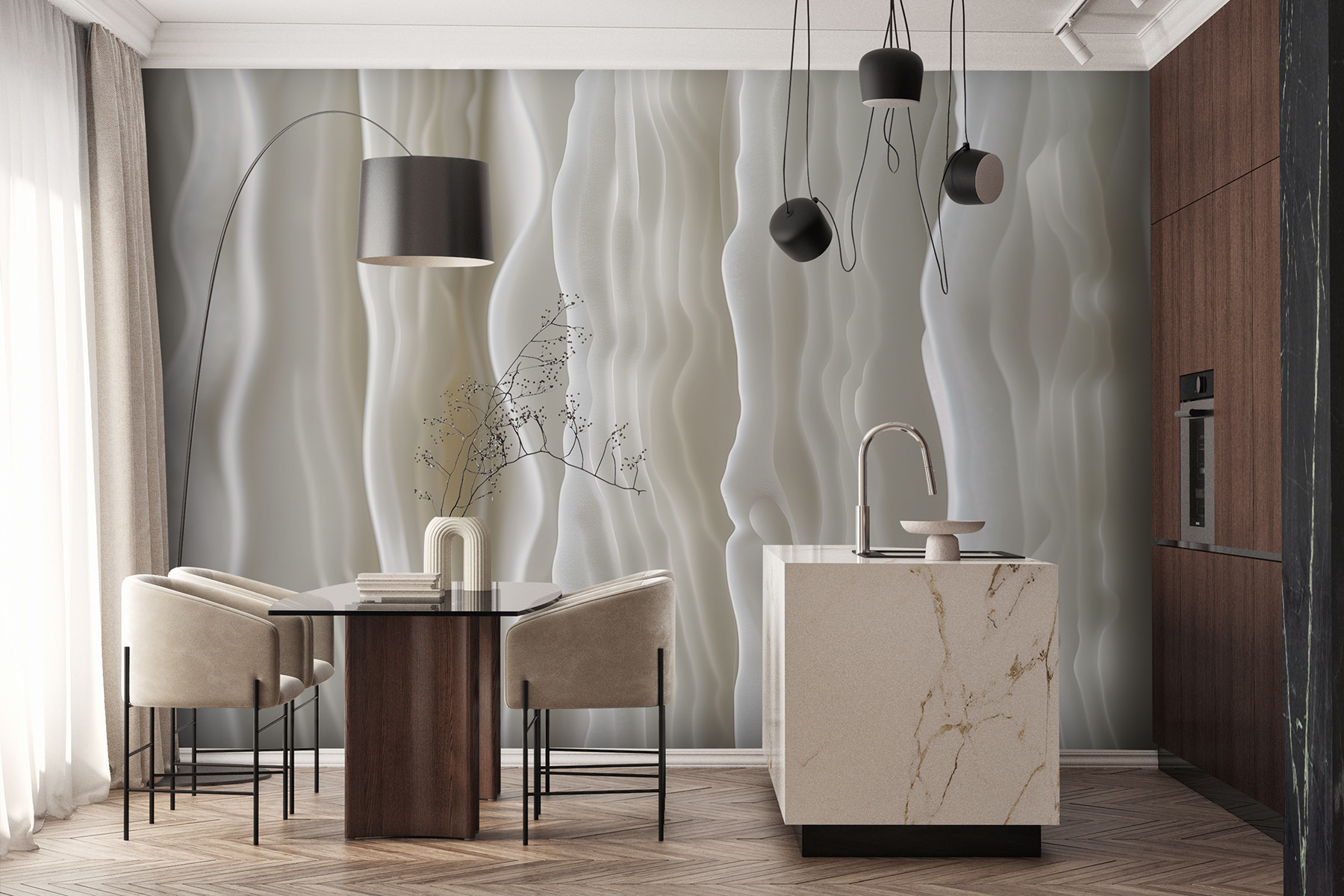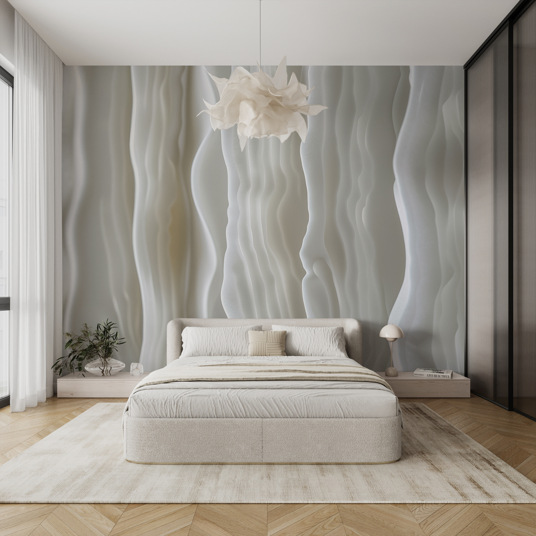 Imaginați-vă că pășiți într-o cameră în care pereții par să se unduiască precum o briză blândă pe o mare calmă. Faceți cunoștință cu pictura murală “Undulating White” – un dans uimitor de valuri abstracte moi care transformă orice spațiu într-o oază modernă. Aceste linii curgătoare! Adaugă profunzime și o liniște aproape magică. Perfectă pentru un colțișor confortabil sau pentru noul birou elegant, aceasta șoptește rafinament cu o notă de fantezie. Este ca și cum ai avea o mini galerie de artă chiar la tine acasă. Prietenii ar putea chiar să vă întrebe: “Ați remodelat?” Doar zâmbiți și lăsați valurile să vorbească.