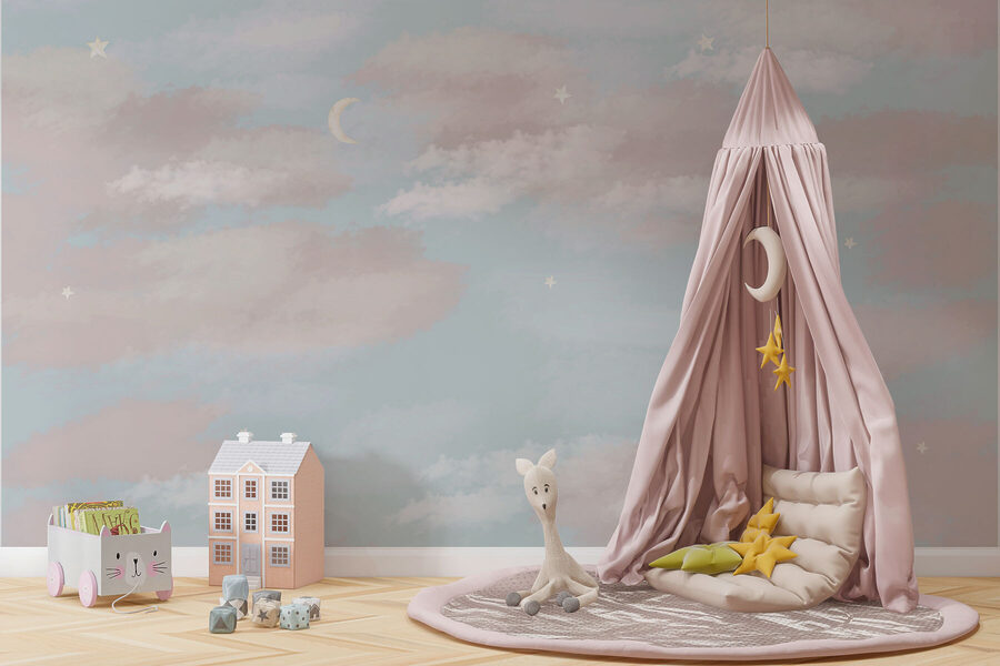 Imaginați-vă că stați întins pe canapea și vă uitați la un cer perfect – fără insecte și vreme imprevizibilă. Acest “Wall Mural: Blue Sky with Clouds and a Crescent Moon” aduce vibrații senine în interior, transformând un perete banal într-o pânză de visat cu ochii deschiși. Norii pufoși plutesc leneș, luna în semilună adaugă un strop de magie, iar nuanța de albastru blând? Ei bine, practic șoptește “relaxare”. Perfectă pentru orice spațiu care tânjește după calm și farmec. Prietenii s-ar putea să vă întrebe dacă v-ați mutat afară. Haideți, răsfățați-vă pereții!