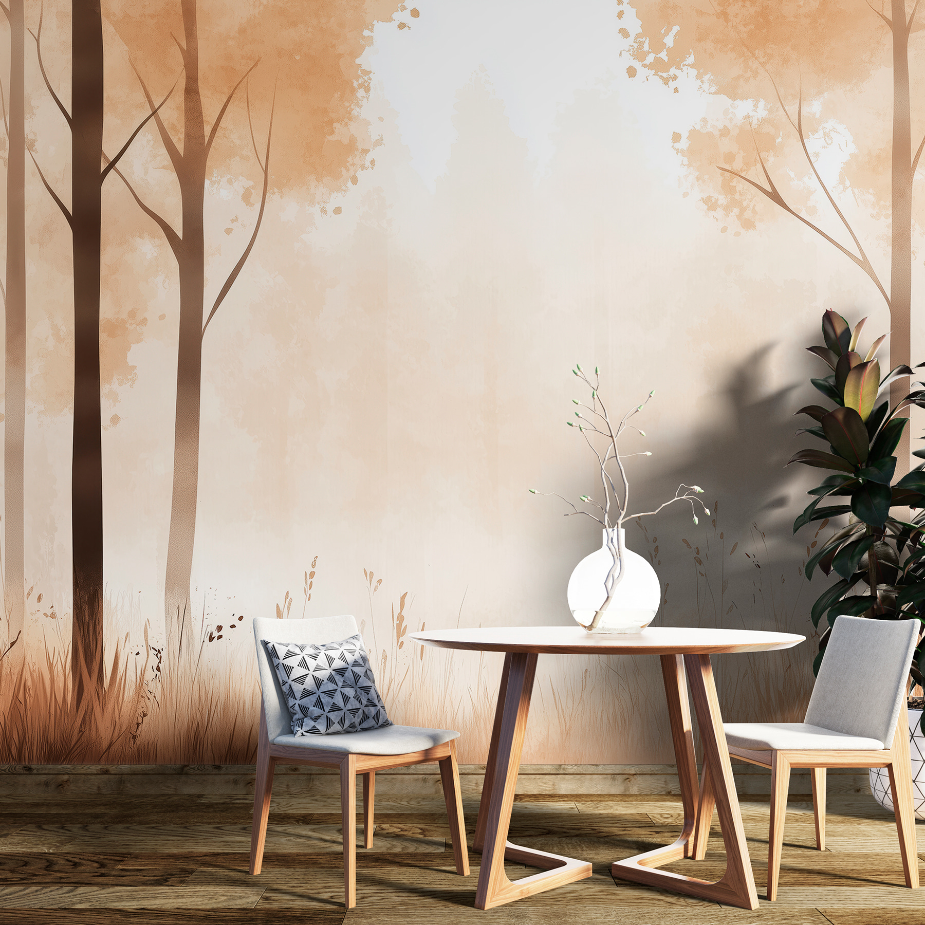 Imaginați-vă că pășiți într-o cameră în care agitația dispare – sunteți doar dvs. și o pădure liniștită și cețoasă. Această pictură murală aduce acea atmosferă senină chiar acasă. Copacii și iarba șoptesc secrete prin ceață, învăluind spațiul tău în calm. Perfect pentru iubitorii de natură sau pentru oricine s-a săturat să se holbeze la pereți simpli. Este ca o capsulă de evadare naturală, fără a vă părăsi canapeaua! În plus, cu siguranță va stârni câteva momente de “wow, de unde ai luat asta?” din partea vizitatorilor. Respirați ușor și lăsați această pădure să își facă magia.