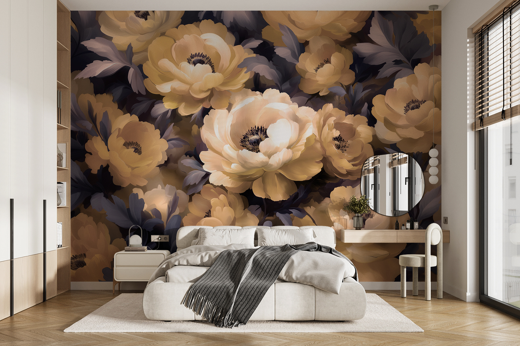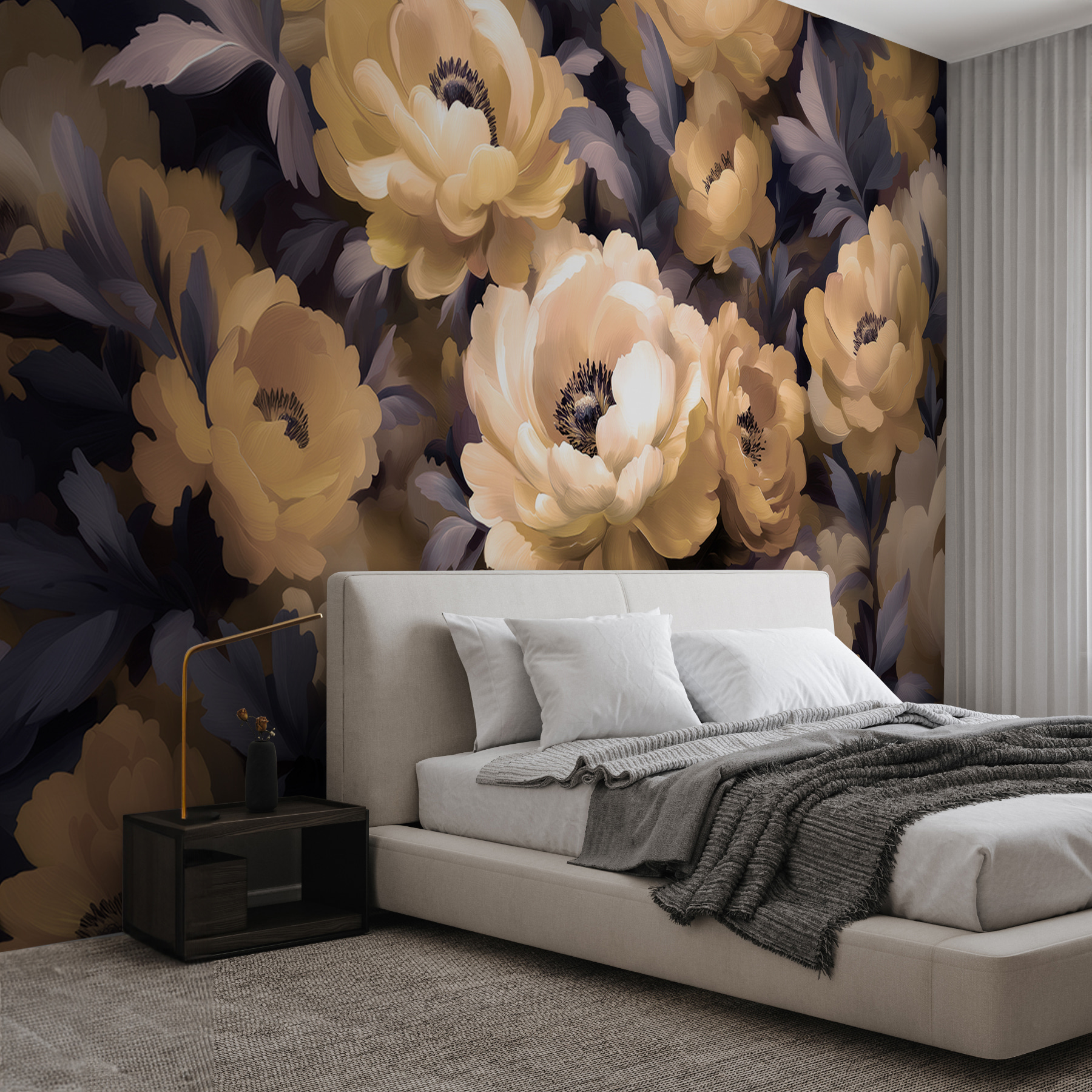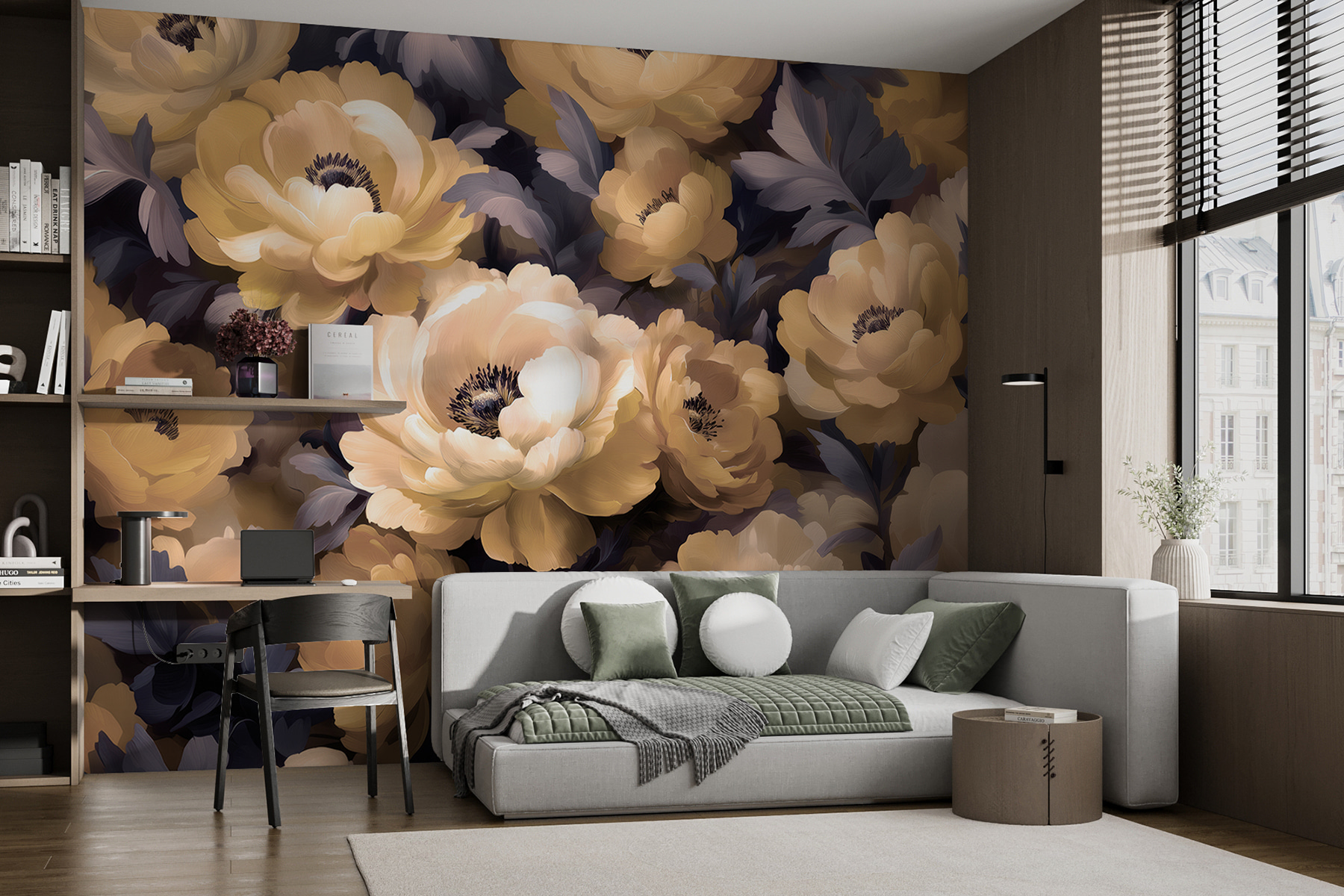 Imaginați-vă că intrați într-o cameră care se simte ca o îmbrățișare blândă dintr-o grădină înflorită. Această pictură murală uimitoare – supranumită “Grup de flori cu frunze” – dă viață spațiului dvs. cu bujorii săi luxurianți și frunzele capricioase. Este ca și cum ai avea o zi de primăvară permanentă în interior. Perfect pentru a înveseli un colț plictisitor sau pentru a crea o atmosferă senină în dormitor. Puteți simți liniștea? Subtilă, dar izbitoare, adaugă un strop de natură fără a fi nevoie de udare. Genul de artă care te face să suspini mulțumit de fiecare dată când treci pe lângă ea.