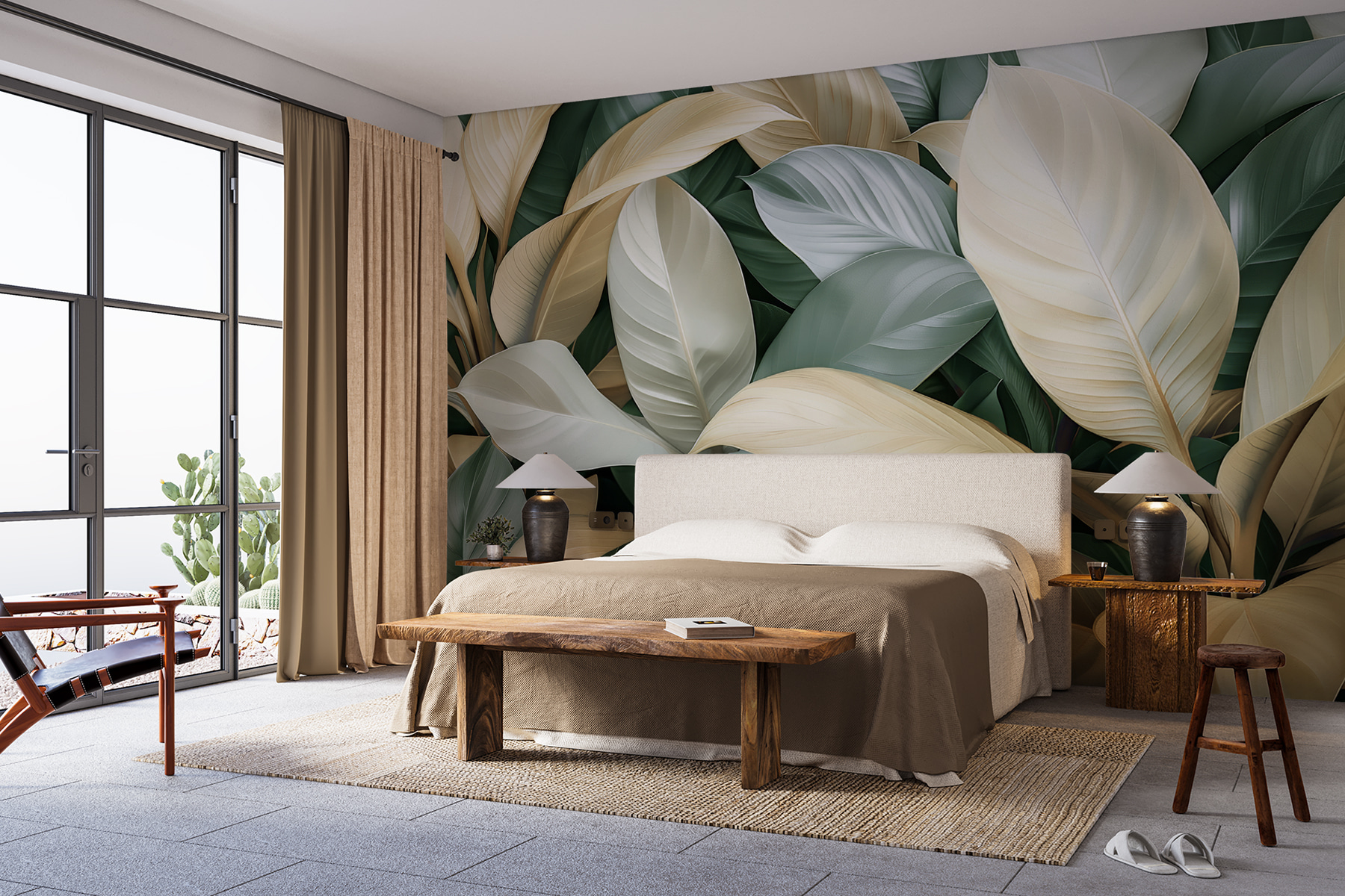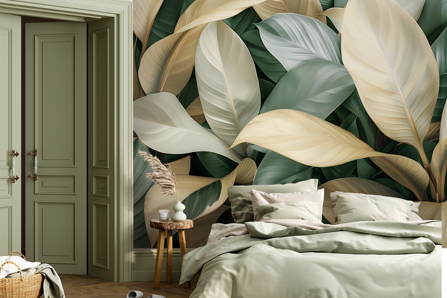 Imaginați-vă această frumusețe pe peretele dvs. – “Frunze luxuriante în nuanțe moi” este ca o briză blândă sub formă de operă de artă. Nu este doar o pictură murală; este o mini-vacanță pentru ochii tăi. Perfect pentru a aduce un pic de aer liber în interior, fără polen. Verdele și cremul moale dansează împreună de parcă ar fi prieteni dintotdeauna. Imaginați-vă că veniți acasă după o zi lungă, vă așezați în fotoliul preferat și vă pierdeți în aceste frunze liniștitoare. Acesta nu este doar un decor, prietene. Este o doză zilnică de liniște.
