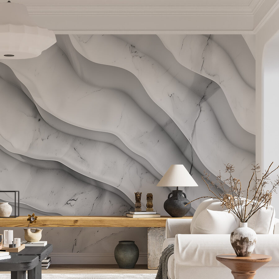 Imaginați-vă că intrați într-o cameră și sunteți întâmpinați de fluxul liniștitor al unei suprafețe de marmură albă cu linii ondulate. Este ca și cum ai avea parte de o zi de spa pentru pereții tăi! Această pictură murală are acel vibe șic și sofisticat, dar cu o întorsătură – liniile ondulate adaugă cantitatea potrivită de energie jucăușă. Perfect pentru un colțișor confortabil sau un birou elegant. Imaginați-vă sorbind cafea, simțindu-vă elegant, dar surprinzător de relaxat. Este spațiul tău, îmbunătățit cu puțină magie de marmură, care transformă zilele obișnuite în zile extraordinare. Cine ar fi crezut că un perete poate face atât de multe?