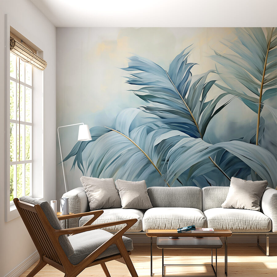 Imaginați-vă că vă treziți în fiecare dimineață la “Whispers of Blue Palms” – este ca și cum ați păși într-o junglă senină, chiar în camera dvs. de zi. Albastrul și verdele liniștitor sunt perfecte pentru a crea un colț zen în care să vă sorbiți cafeaua de dimineață sau să vă relaxați după o zi lungă. S-ar putea chiar să începeți să credeți că spațiul dvs. are propriile sale vibrații de refugiu exotic. Păsările vor fi geloase pe aceste frunze! În plus, este atât de versatil – funcționează cu aproape orice stil de decor. Transformați un perete simplu într-o evadare blândă învăluită în cele mai suave nuanțe ale naturii.