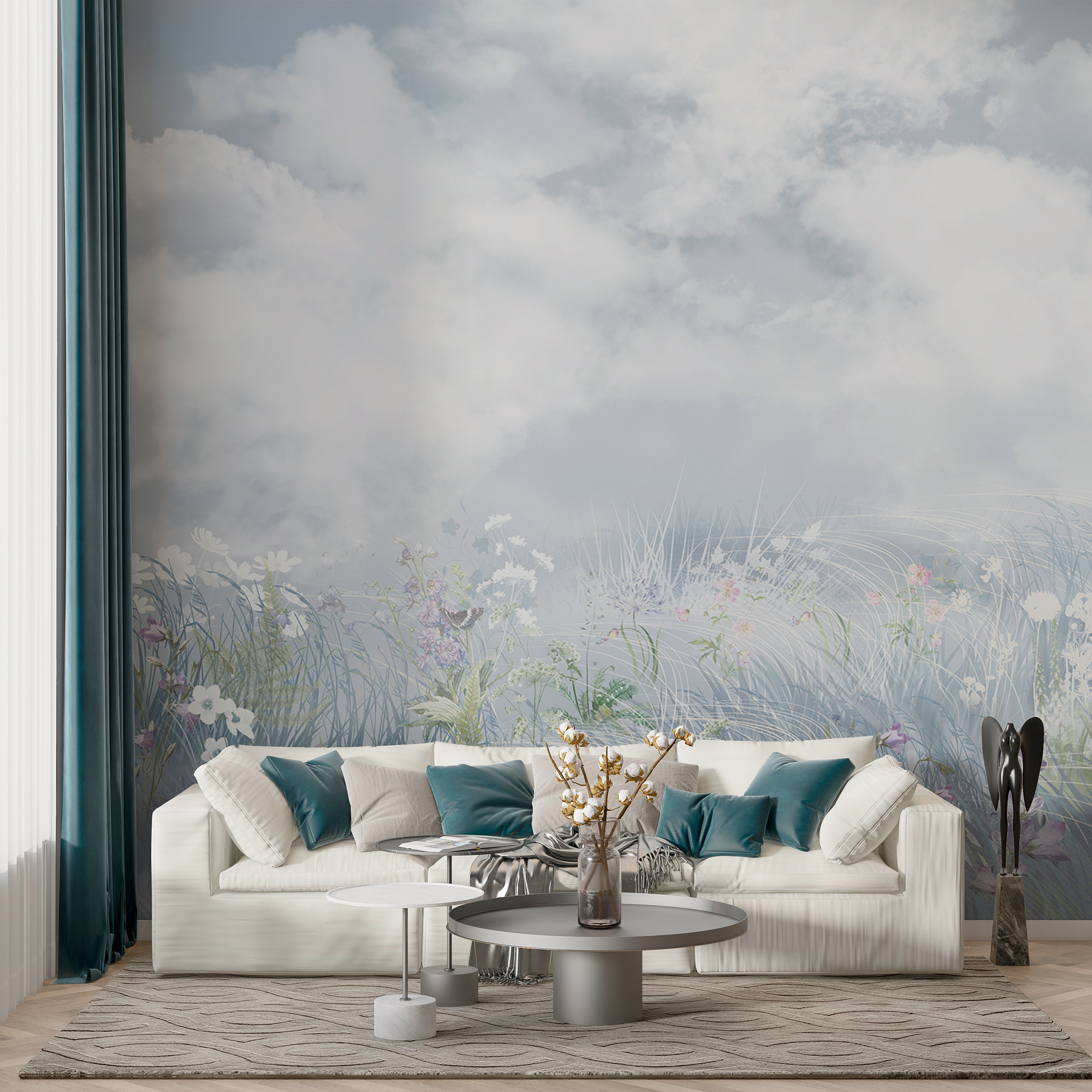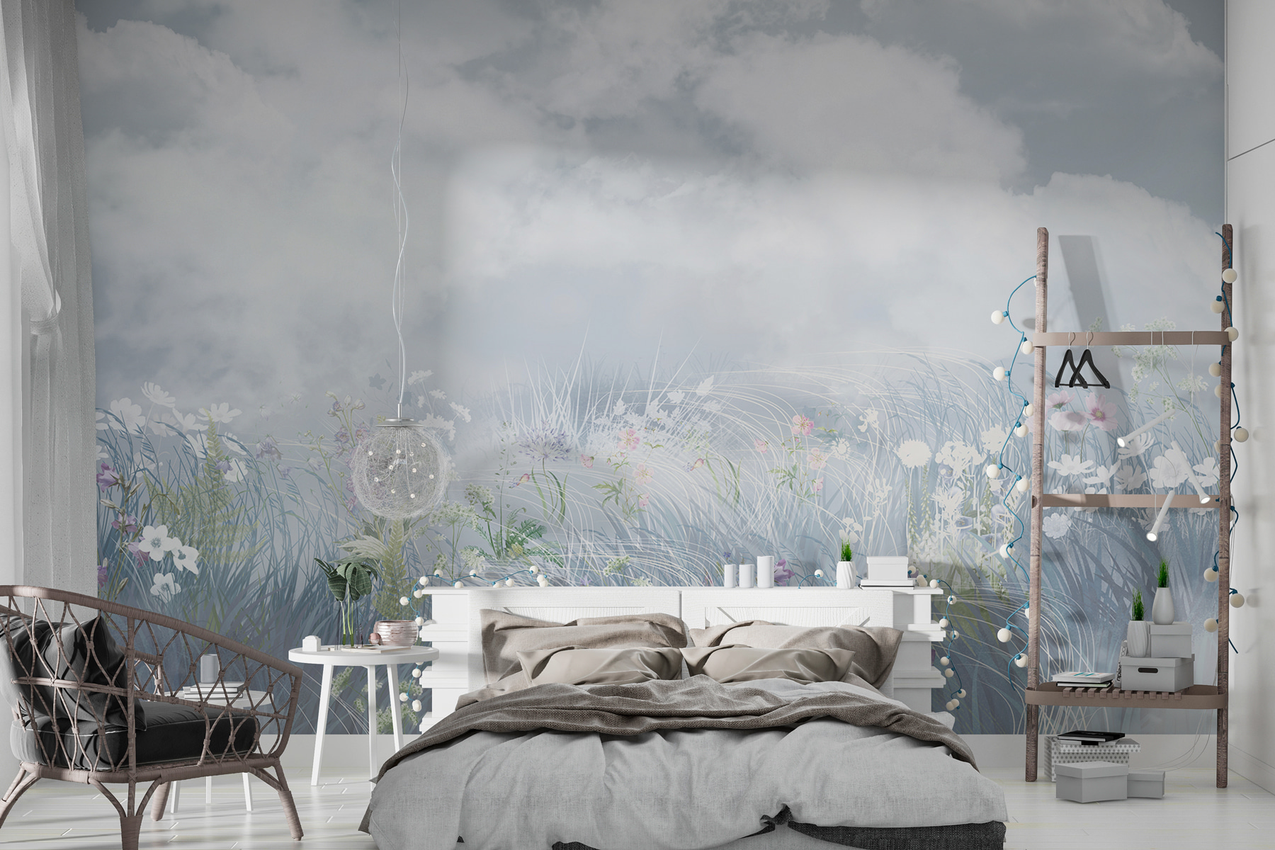 Imaginează-ți că te trezești în fața unui câmp de flori în fiecare zi, fără să părăsești vreodată patul tău confortabil. Această pictură murală are nori atât de pufoși încât practic se desprind de pe perete și flori sălbatice care par să înflorească în fața ochilor tăi. Este ca un vis în acuarelă pe peretele tău. Perfect pentru cei care își doresc să poată dormi pe o pajiște (fără furnici). Are acest mod magic de a deschide o cameră, făcând-o să se simtă calmă și aerisită. O evadare perfectă. Cu ceaiul în mână, s-ar putea să uiți că ești acasă. Fericit, nu-i așa?