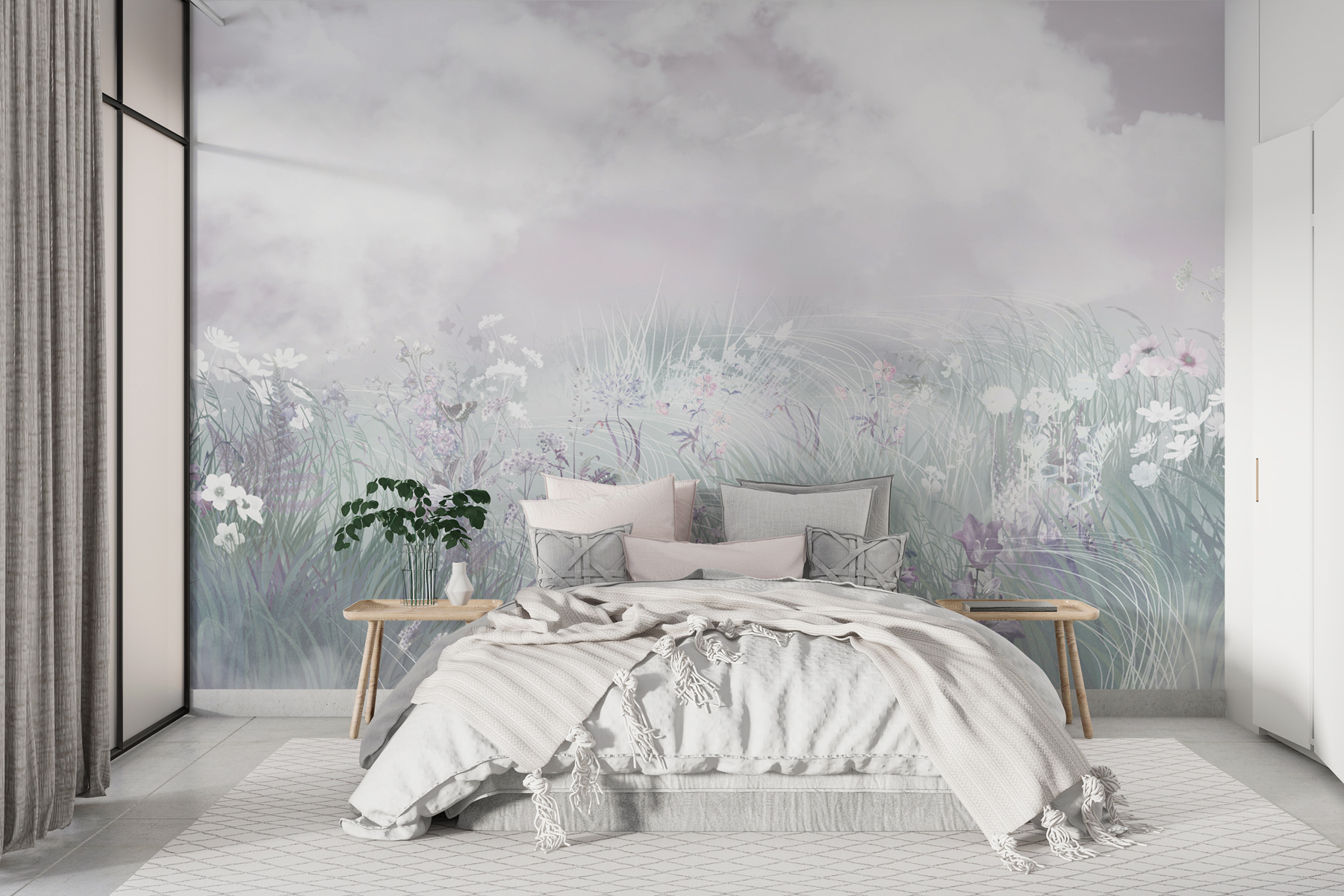 Imaginați-vă că vă treziți în fiecare dimineață într-un câmp de flori sălbatice și iarbă moale legănându-se sub nori pufoși – sună de vis, nu? Această pictură murală “Câmp de flori și iarbă” vă transportă direct într-un vis senin în acuarelă. Este ca și cum natura a pictat un tablou doar pentru camera ta! Perfect pentru cei care doresc să adauge o notă de calm casei lor sau au nevoie de o pauză de la agitația obișnuită. Este ca o mini-vacanță fără a ieși din casă. În plus, dacă pereții tăi ar putea zâmbi, cu siguranță ar face-o cu această frumusețe în jur!