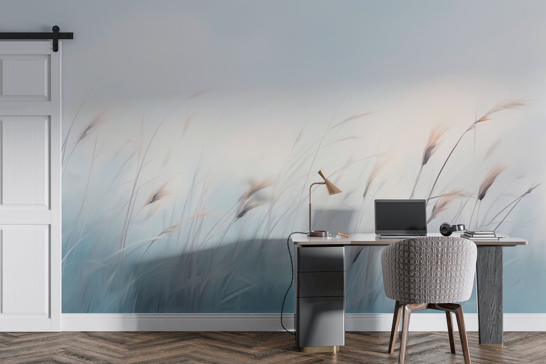 Imaginați-vă că intrați într-o cameră și sunteți întâmpinați de un câmp senin de iarbă care se întinde la nesfârșit sub un cer cețos. Această pictură murală uimitoare nu este doar decor – este ca o șoaptă blândă a naturii chiar în camera dvs. de zi. Perfect pentru acele dimineți gri în care să te dai jos din pat pare un act eroic; înfășoară-te în calmul liniștit al unei pajiști cețoase fără să părăsești canapeaua. Ideală pentru spațiile de meditație sau oriunde aveți nevoie de o evadare în natură – fără insecte! Îmbrățișați liniștea, lăsați ierburile moi să vă alunge grijile.