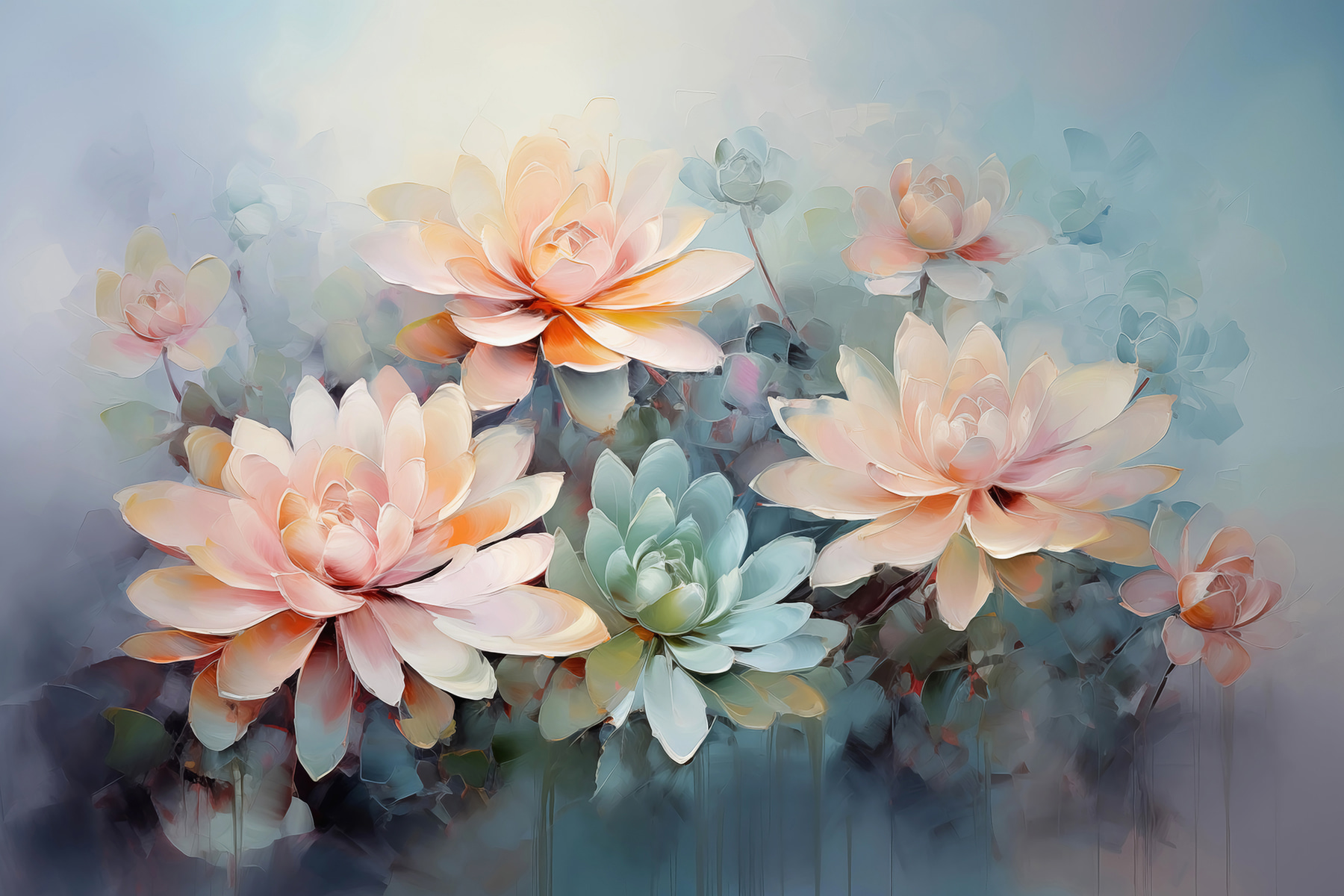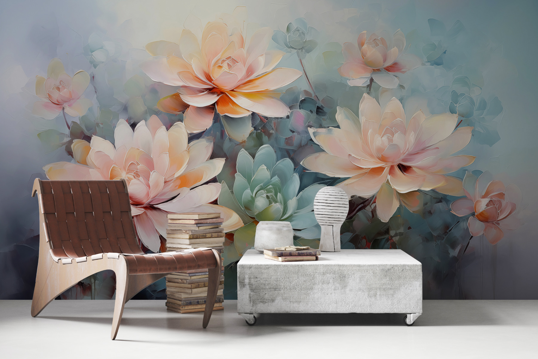 Imaginează-ți că te trezești într-o lume albastră de vis, în care florile explodează ca niște artificii în acuarelă pe pereții tăi. Această pictură murală are petale moi ca inima, în nuanțe de blush și mentă, care dansează pe o briză blândă, șoptindu-și practic cuvinte dulci. Perfectă pentru colțurile confortabile sau pentru un colț de lectură liniștit – este ca o petrecere în grădină pentru ochii tăi. Prietenii s-ar putea chiar să se oprească la jumătatea propoziției doar pentru a absorbi totul. Ideală pentru oricine dorește o notă de eleganță capricioasă amestecată cu farmecul Mamei Natură. Și poate și un strop de magie!