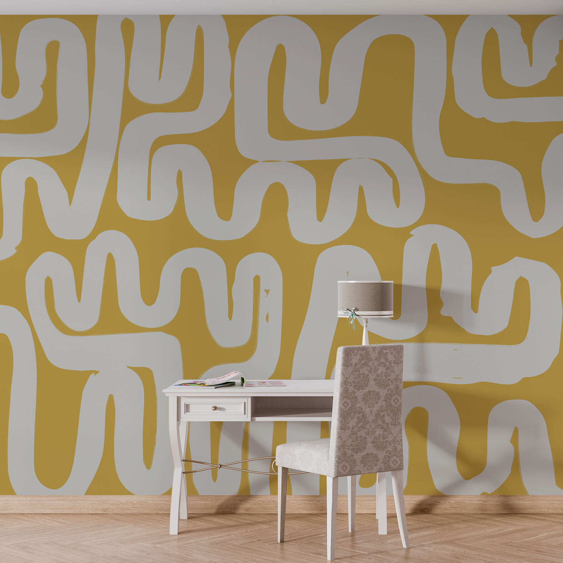 Înveseliți orice spațiu cu Fototapet White and Yellow Maze! Acest design jucăuș îmbină galbenul aprins cu liniile albe curgătoare, creând un sentiment de mișcare care seamănă cu un labirint vesel. Imaginați-vă că pășiți într-o cameră în care viața pare un pic mai distractivă. Este perfect pentru un colț de lectură confortabil, pentru biroul de acasă sau chiar pentru o cameră de zi plină de viață – pentru că cine nu vrea ca oaspeții să simtă că se plimbă printr-un mic puzzle vesel?