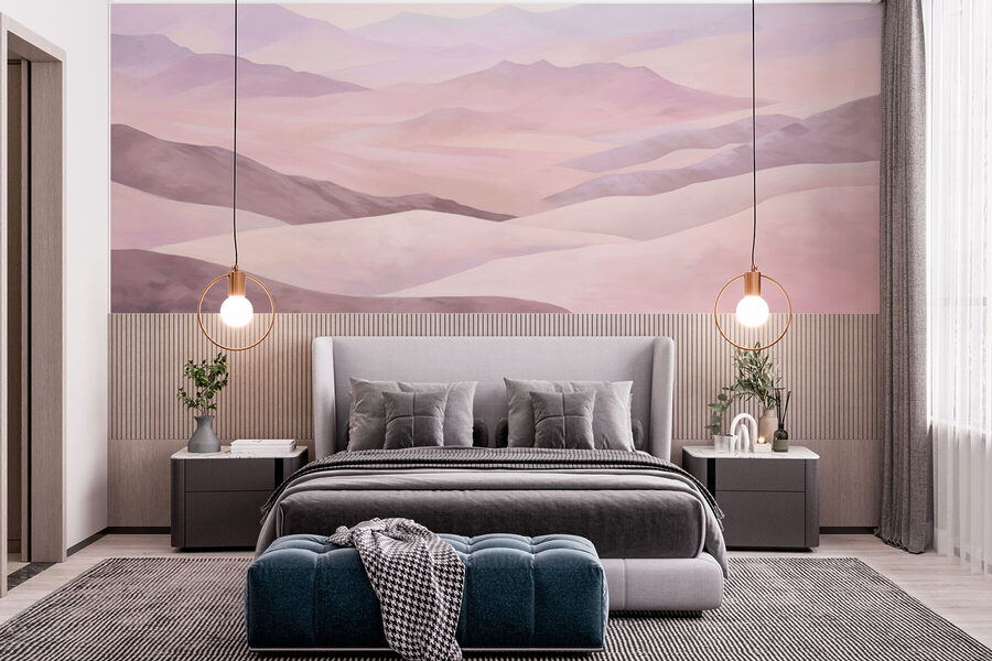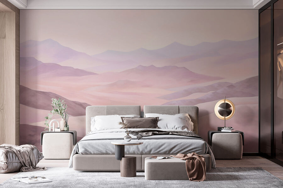 Imaginează-ți că te relaxezi în fotoliul tău preferat și privești o pictură murală uimitoare în acuarelă care se întinde pe peretele tău ca un peisaj blând, de vis. Este mai mult decât doar dealuri frumoase și munți liniștiți – este ca și cum natura a decis să vină în casă pentru o discuție. Perfect pentru oricine visează să evadeze în spații pașnice și largi fără să părăsească sufrageria. Culorile blânde și stinse aduc o vibrație liniștitoare, învăluindu-vă într-o îmbrățișare confortabilă, pitorească. Fie că visezi cu ochii deschiși sau tragi un pui de somn, această pictură murală îți acoperă spatele!
