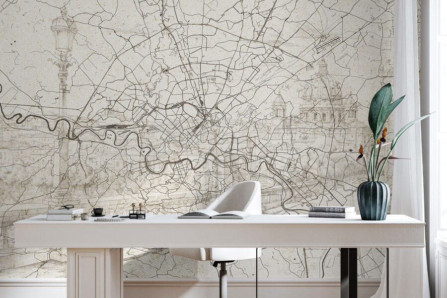 V-ați imaginat vreodată să vă pierdeți în propria sufragerie? Pictura murală “Harta unui oraș” poate transforma orice perete într-o mini aventură. Nu este doar o piesă de decor – este ca și cum ai avea o fereastră către o stradă plină de agitație, fără claxoanele reale. Perfect pentru toți cei cărora le place să planifice călătorii imaginare sau care vor doar să pretindă că au un simț al direcției! Cu liniile sale detaliate și vibrațiile orașului, această pictură murală adaugă o notă de farmec urban care șoptește povești despre nenumărate căi și colțuri ascunse. Un fundal confortabil, dar aventuros, pentru a vă găsi următorul loc de luat masa sau următoarea destinație de visat cu ochii deschiși.