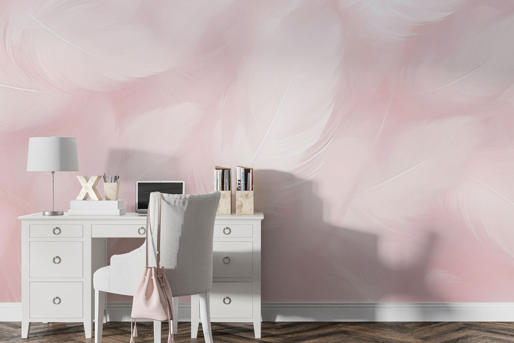 Imaginați-vă că intrați într-o cameră în care vă simțiți ca într-o îmbrățișare blândă – chiar acolo, în propriul spațiu. Această pictură murală fermecătoare, “Feather Dreams in Soft Pink Hues” (Vise cu pene în nuanțe moi de roz), aduce această vibrație fără efort. Rozul suav și penele delicate plutesc grațios pe perete, ca un vis cu ochii deschiși din care nu vrei să te trezești niciodată. Nu este doar decor; este o stare de spirit. Perfect pentru momentele în care ai nevoie să te relaxezi și să te imaginezi plutind pe nori. Este ca o felie personală de seninătate, cu doar un strop de fantezie. Cine ar fi crezut că pereții pot fi atât de confortabili?