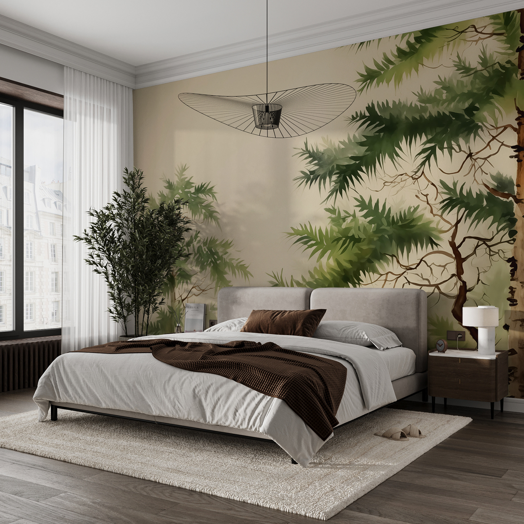Imaginați-vă că vă treziți în fiecare zi într-o pădure blândă – nu este nevoie de creaturi din pădure! Această pictură murală, numită pe bună dreptate “Pictură murală de copaci și ceață”, vă învăluie într-o îmbrățișare moale și cețoasă. Este ca o evadare liniștită unde agitația nu te poate găsi. Într-o cameră îmbrăcată cu acești copaci de vis, aerul pare mai proaspăt, aproape ca și cum ai împărtăși secrete cu pădurile străvechi. Perfect pentru relaxare după o zi lungă. Cine ar fi crezut că liniștea poate fi atârnată pe un perete? În plus, bate întreținerea unei plante la ghiveci.