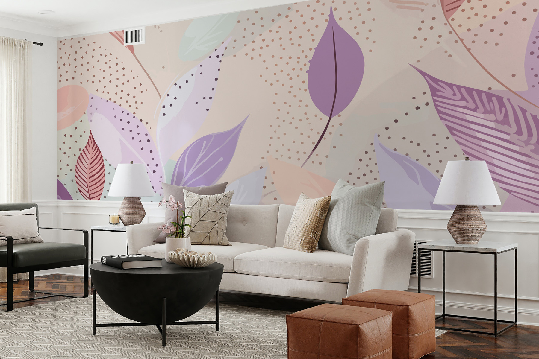 Imaginați-vă asta: o după-amiază confortabilă, o ceașcă de ceai și farmecul blând al “Frunzelor și punctelor în tonuri atenuate” care vă împodobește peretele. Culorile suave, pământii și modelul jucăuș al acestei picturi murale ar putea face chiar și cea mai morocănoasă zi de luni să se simtă ca o duminică răcoroasă. Imaginați-vă că ajungeți acasă la acest design liniștitor, în care fiecare frunză spune un secret șoptit, iar punctele par să danseze cu încântare. Este ca și cum ați invita un pic din magia naturii în casă – perfect pentru cei care iubesc o notă de fantezie în decorul lor. Ideal pentru a adăuga căldură și personalitate fără a spune un cuvânt.