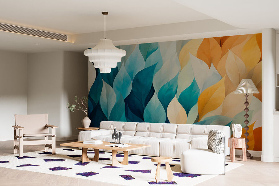 Imaginați-vă această pictură murală pe peretele dvs. – unde natura întâlnește arta abstractă în cel mai încântător dans al culorilor. “Colorful Leaves in a Row” se simte ca o briză blândă care suflă printr-un magazin de dulciuri, lăsând în urmă o serie de nuanțe încântătoare. Albastrul se amestecă cu galbenul, creând o atmosferă caldă și confortabilă, perfectă pentru stimularea creativității sau pur și simplu pentru relaxare cu o ceașcă de ceai. Este ca și cum ai face o plimbare în natură chiar în sufrageria ta, fără gândacii enervanți! Fiecare frunză pare să șoptească secrete de calm și creativitate. O soluție rapidă pentru depresia pereților goi!
