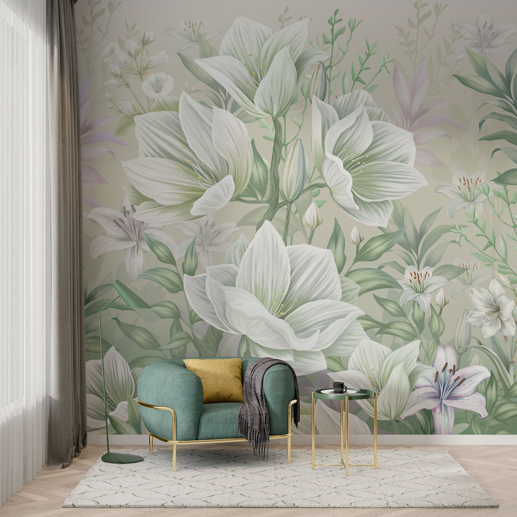 Imaginați-vă că intrați într-o cameră în care pereții șoptesc povești blânde ale naturii. “Elegant White Blooms in Harmony” nu este doar o pictură murală – este ca o grădină secretă care înflorește chiar în camera dvs. de zi. Aceste petale delicate par să danseze, aducând o notă proaspătă spațiului tău. Este perfect pentru oricine visează la o bucată de liniște, fără drama de la degetul verde. O atingere de fantezie, un strop de eleganță. Și sincer, cui nu i-ar plăcea să se trezească în fiecare dimineață în această atmosferă senină? Lăsați pereții dvs. să spună ceva frumos.