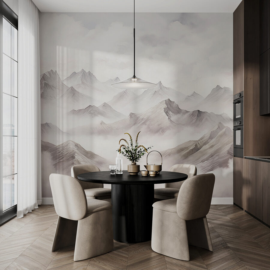 Imaginați-vă că intrați într-o cameră și simțiți că pășiți direct într-o evadare montană de vis. Acesta este efectul acestei picturi murale “Lanț muntos cu nori” asupra oricărui spațiu. Este ca și cum ar fi propria capodoperă a Mamei Natură – nori delicați sărutând vârfuri aspre, toate scăldate în lumina blândă a zilei. Perfect pentru oricine tânjește după o atingere de sălbăticie, fără bocanci de drumeție. Face camera să pară spațioasă, calmă și un pic misterioasă. Aproape că te aștepți la o briză ușoară și la cântecul păsărilor! Este artă pentru perete și pentru suflet.