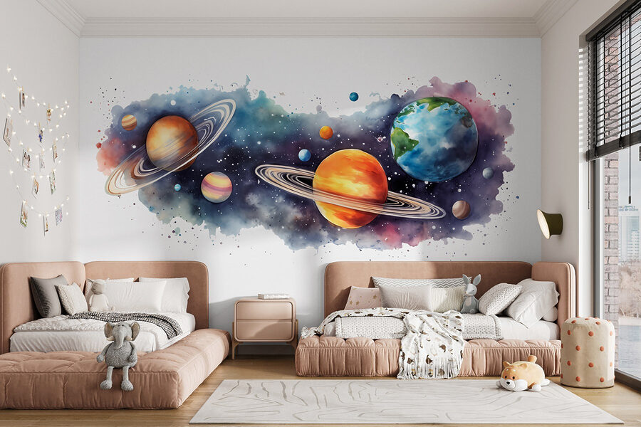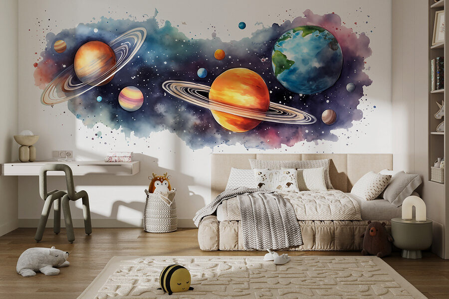 Ați visat vreodată să explorați universul din propria sufragerie? Această pictură murală “Planete și stele” aduce cosmosul direct pe pereții dvs. – fără a fi nevoie de o navă spațială! Imaginați-vă sorbindu-vă cafeaua de dimineață în timp ce Saturn și Jupiter vă țin companie. Este ca un loc în primul rând în galaxie. Copii și adulți deopotrivă vor simți acea senzație de uimire înstelată de fiecare dată când trec pe lângă ei. Perfect pentru a adăuga un strop de mister și uimire oricărui spațiu. Bonus: nu necesită gravitație. Cine ar fi crezut că designul interior poate fi atât de stelar?
