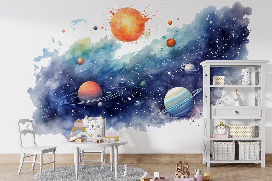 Transformați-vă spațiul într-un tărâm al minunilor cosmice cu acest mural uimitor, “Planete pe cer cu planete”. Este ca și cum ai aduce universul chiar în sufrageria ta – nu este necesară o rachetă. Imaginați-vă că vă relaxați, vă holbați la aceste planete frumos lucrate și vă simțiți ca și cum ați putea pluti printre stele. Designul moale în acuarelă adaugă o notă de vis, făcând orice cameră să pară mai expansivă și mai aventuroasă.