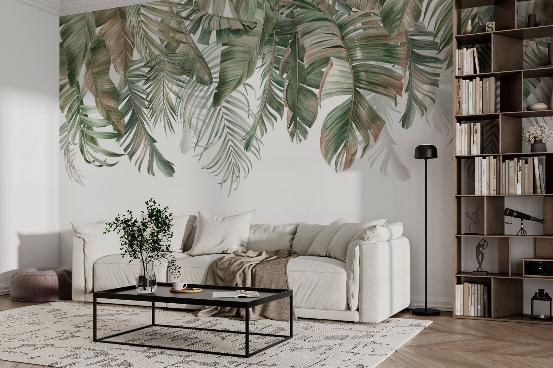 Imaginați-vă că pășiți într-o cameră în care vă simțiți ca o briză ușoară printr-o junglă luxuriantă, fără a fi nevoie să vă ridicați de pe canapea. Această pictură murală “Row of Green and Brown Leaves” face exact asta. Este ca și cum natura însăși ar fi decis să vină la un ceai. Verdele bogat amestecat cu maronii pământii creează o atmosferă foarte relaxată, transformând orice perete într-o evadare naturală. Perfect pentru persoanele care au o slăbiciune pentru verdele tropical și care își doresc în secret să locuiască într-o căsuță în copac. Vă face să vă doriți să vă relaxați și să ascultați șoapta frunzelor, nu-i așa?