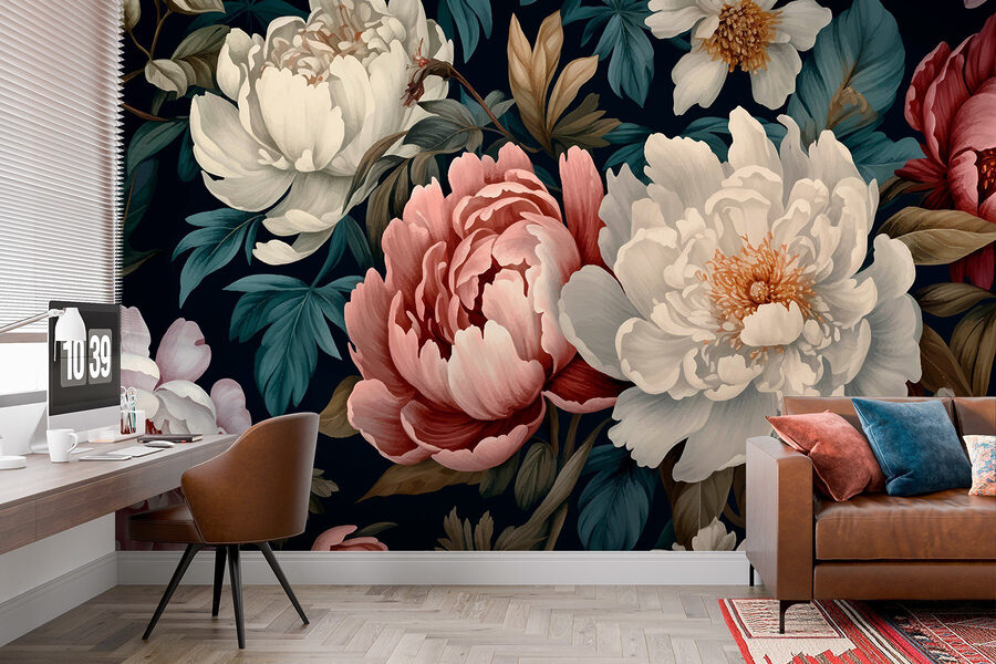 Transformarea unei încăperi cu pictura murală “Elegant Floral Symphony in Bloom” este ca și cum ați invita cele mai bine păstrate secrete ale naturii în interior. Imaginați-vă că pășiți într-o grădină în care bujorii se leagănă ușor și dansează, petalele lor luxuriante invitându-vă să priviți mai atent. Nuanțele profunde creează o atmosferă confortabilă, perfectă pentru a vă relaxa cu o carte sau pentru a împărți o ceașcă de cafea cu un prieten. Nu este doar un tapet; este un starter de conversație, un fundal pentru amintiri. Un mic strop de încântare florală poate transforma orice perete într-un punct focal vibrant, aproape ca și cum Mama Natură însăși ar fi decis să treacă pe aici pentru o vizită.