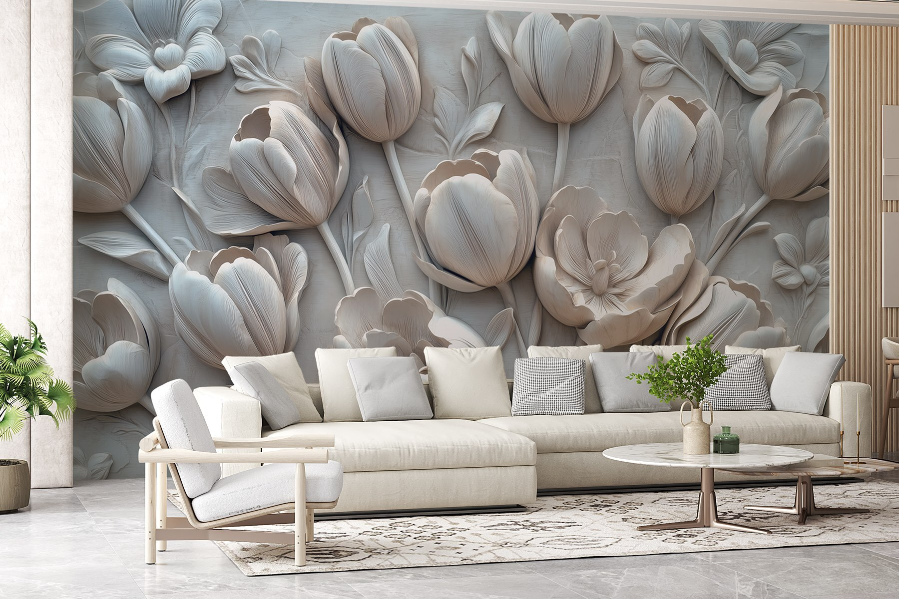 Transformă-ți spațiul cu această pictură murală uimitoare cu flori albe delicate sculptate direct într-un fundal de vis. Este ca și cum ai aduce o grădină senină în interior, fără polenul deranjant! Imaginați-vă intrând într-o cameră în care aceste flori vă întâmpină, șoptindu-vă calm și eleganță. Perfecte pentru un colț de lectură confortabil sau o bucătărie luminoasă, pot face chiar și cele mai aglomerate zile să se simtă puțin mai liniștite. Și să fim realiști, cine nu și-ar dori să își soarbă cafeaua de dimineață înconjurat de o asemenea frumusețe? Este mai mult decât decor – este o vibrație. Adaugă puțin caracter pereților tăi cu această capodoperă florală!