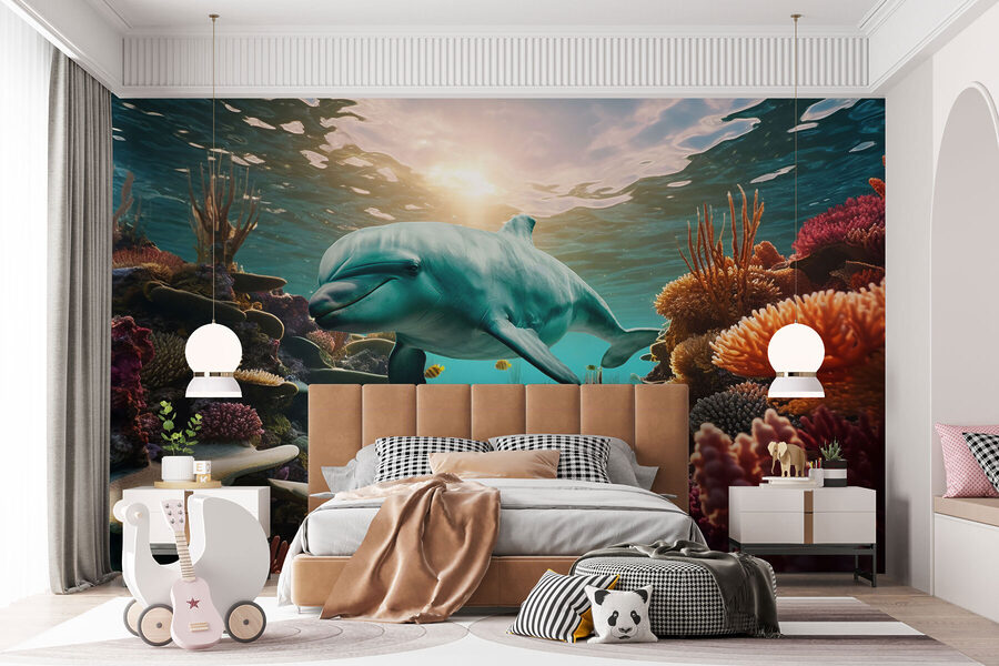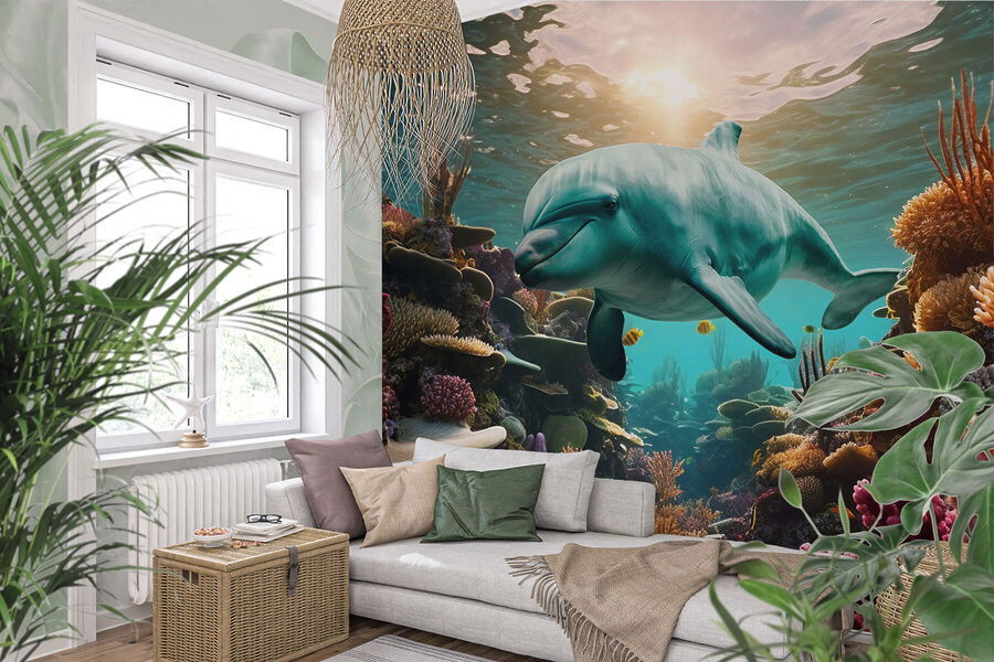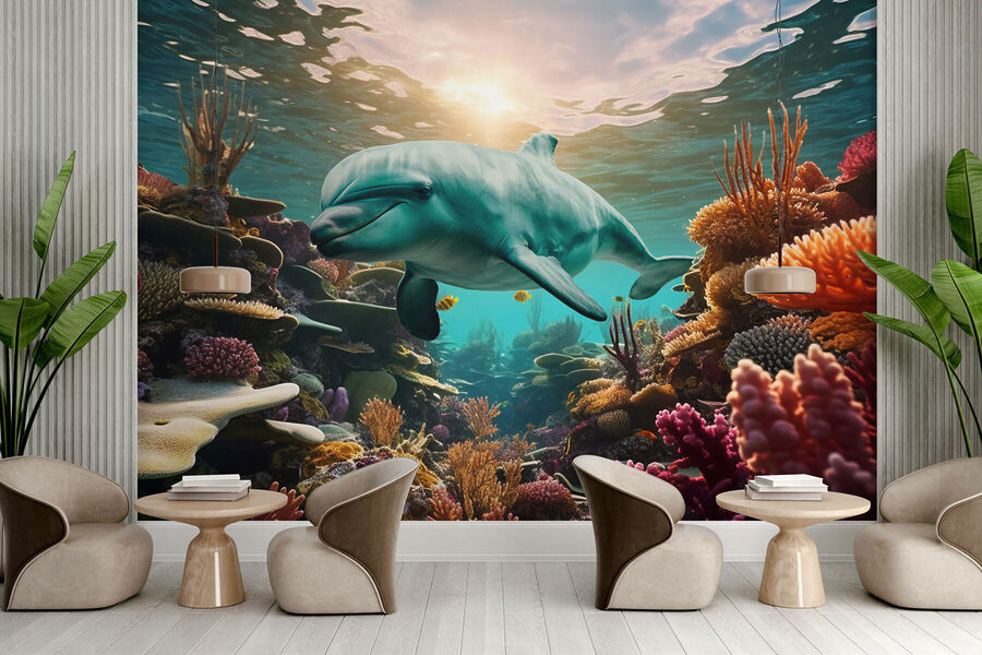 Scufundați-vă într-un strop de seninătate cu această pictură murală cu un delfin care înoată liniștit într-un ocean vibrant. Imaginați-vă asta – pereți transformați într-o evadare subacvatică de vis, plină de corali colorați și pești veseli. Este ca și cum ai avea o fereastră către un ocean luminos și liniștit chiar în casa ta. Prietenii se vor opri cu siguranță și se vor holba, întrebându-se dacă au pășit într-un acvariu. Imaginați-vă că vă treziți în fața acestei scene uimitoare, simțindu-vă în fiecare zi un pic mai relaxat. Nu este doar decor; este o aventură zilnică care așteaptă să se întâmple. Perfectă pentru a adăuga o atmosferă răcoroasă pe malul mării, această pictură murală aduce soare și bucurie în orice spațiu!
