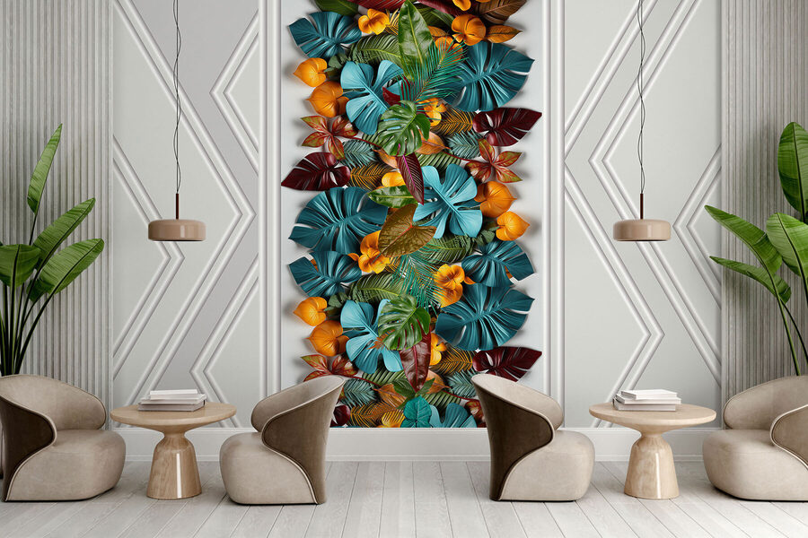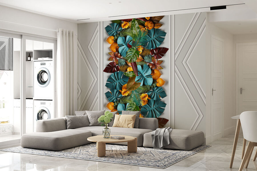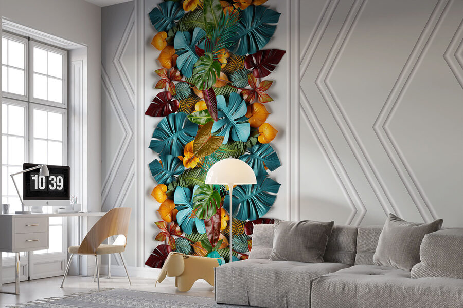 Transformați orice cameră cu această pictură murală încântătoare cu o ușă albă înconjurată de o mulțime de frunze colorate. Este ca și cum ai aduce o escapadă tropicală însorită chiar în spațiul tău! Imaginați-vă că vă treziți în fiecare dimineață într-o junglă vibrantă – verdele viu și culorile portocalii sunt menite să stârnească bucurie și poate chiar să vă facă să visați cu ochii deschiși. Perfectă pentru camera de zi sau biroul de acasă, aceasta creează un fundal jucăuș care este atât relaxant, cât și energizant. Imaginați-vă că primiți prieteni și îi auziți vorbind despre decorul dvs. unic. Cine nu și-ar dori să se bucure de o astfel de atmosferă luxuriantă? Este vorba despre acea atmosferă de evadare fără a părăsi casa!