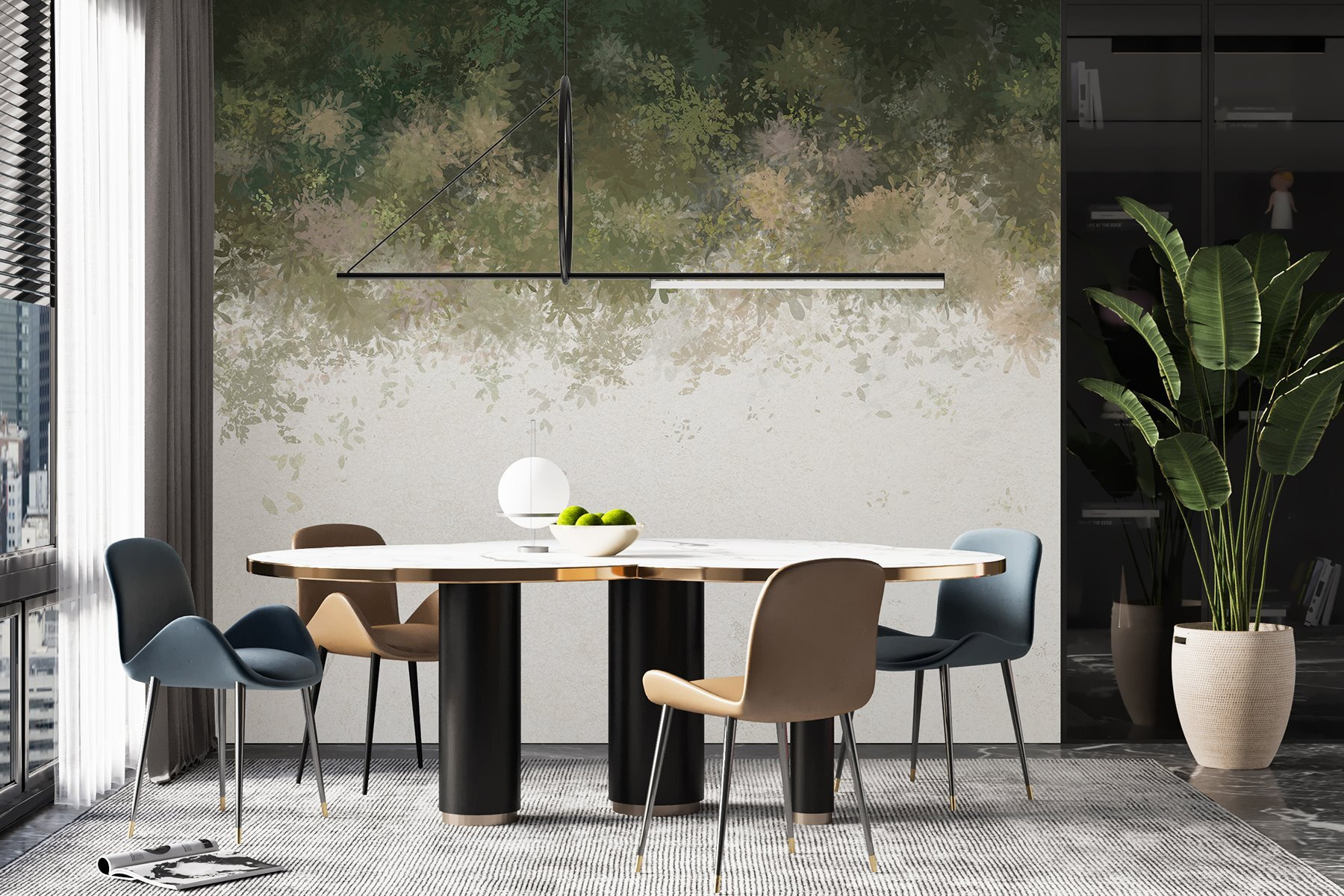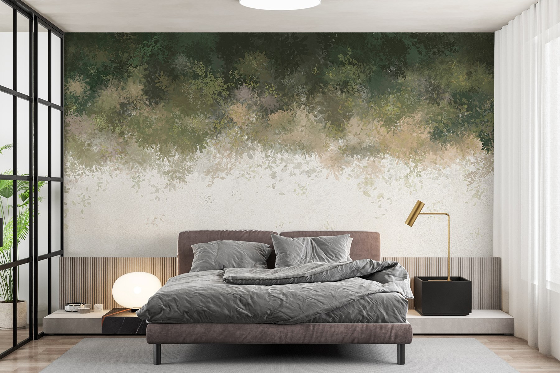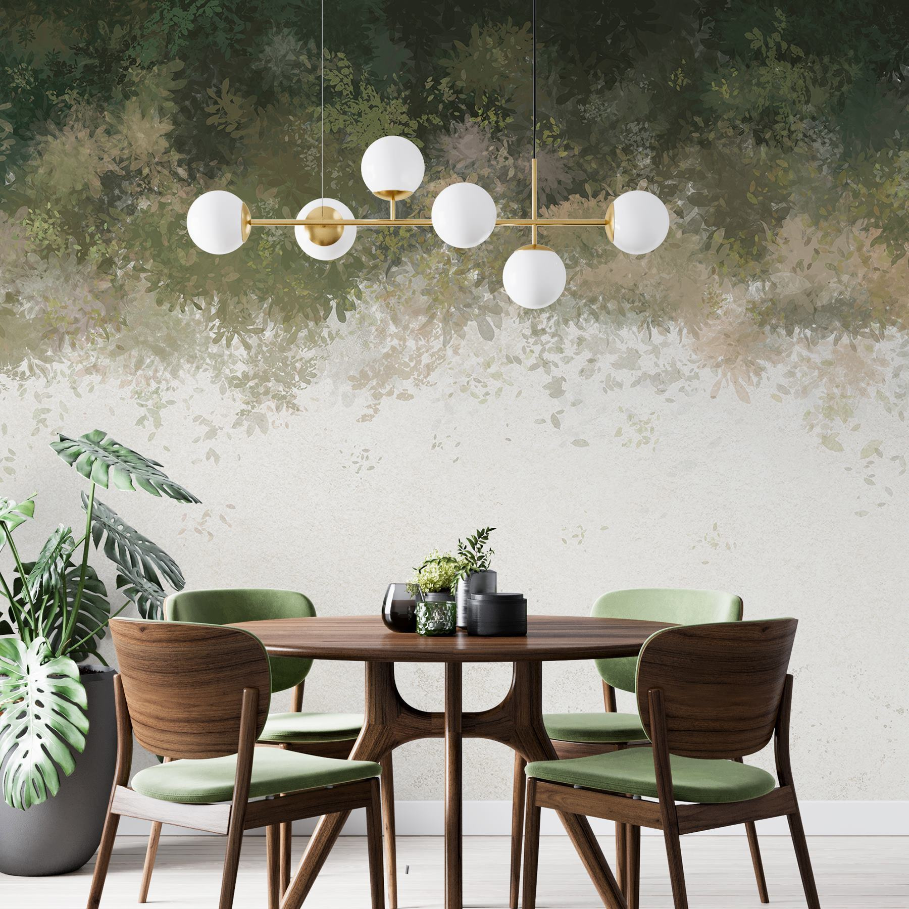 Imaginați-vă o zi care se transformă în noapte chiar în camera dvs. Pictura murală “Sunset Hues Blending into Night” este ca marele final al naturii – verdele moale al pădurii se împletește în umbre delicate. Este ca și cum o pădure magică s-ar fi hotărât să campeze pe peretele tău. Perfectă pentru acele nopți confortabile în care vă relaxați cu o carte sau doar visați cu ochii deschiși. Această pictură murală șoptește liniște cu o notă de fantezie. Imaginați-vă un oaspete care intră și se oprește – doar pentru a privi – întrebându-se cum ați capturat însuși amurgul. Se simte seninătatea, nu-i așa?