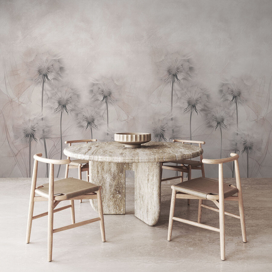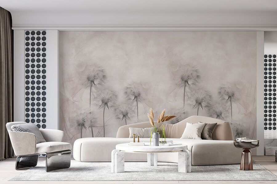 Transformați-vă spațiul cu această pictură murală încântătoare cu un grup capricios de păpădii pe un fundal alb moale. Este ca și cum ai aduce o gură de aer proaspăt în interior – fără polenul murdar! Imaginați-vă sorbind cafea într-o cameră însorită în care aceste flori blânde se leagănă ușor pe perete. Perfect pentru acele zile în care natura pare un pic prea departe. Această pictură murală adaugă o notă de eleganță și un strop de creativitate, făcând pereții dvs. să pară vii. Fie că este vorba de un colțișor confortabil sau de o cameră de zi plină de viață, este exact genul de decor care stârnește conversații și înseninează ziua oricui. Cine nu ar zâmbi uitându-se la păpădiile care dansează ușor?