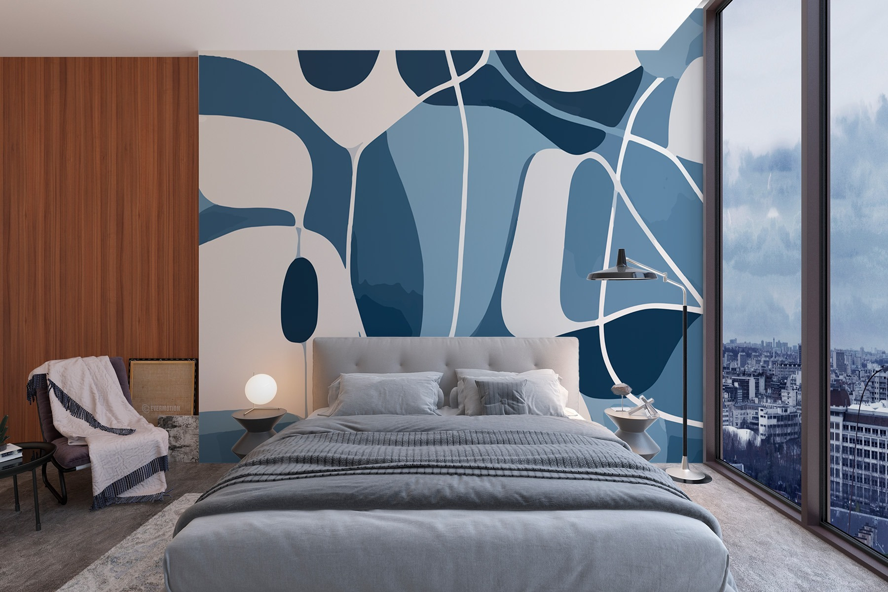 Imaginați-vă acest lucru: o cameră confortabilă cu această pictură murală – vârtejuri albastre și albe care vă fac să vă gândiți la valuri sau nori plutind. Este ca o îmbrățișare ușoară din partea unei brize răcoroase. Prietenii trec pe acolo, luați prin surprindere, de parcă ar fi nimerit într-un tărâm al minunilor al artei contemporane. Este acel moment “wow, nu m-am așteptat la asta”, într-un sens bun. Dansul geometric de pe peretele tău este atât liniștitor, cât și intrigant – perfect pentru o după-amiază leneșă cu o carte sau pentru o cină animată. Și cine nu iubește un pic de fler funky 3D pentru a condimenta spațiul? Un fundal perfect pentru o viață îndrăzneață și o relaxare confortabilă.