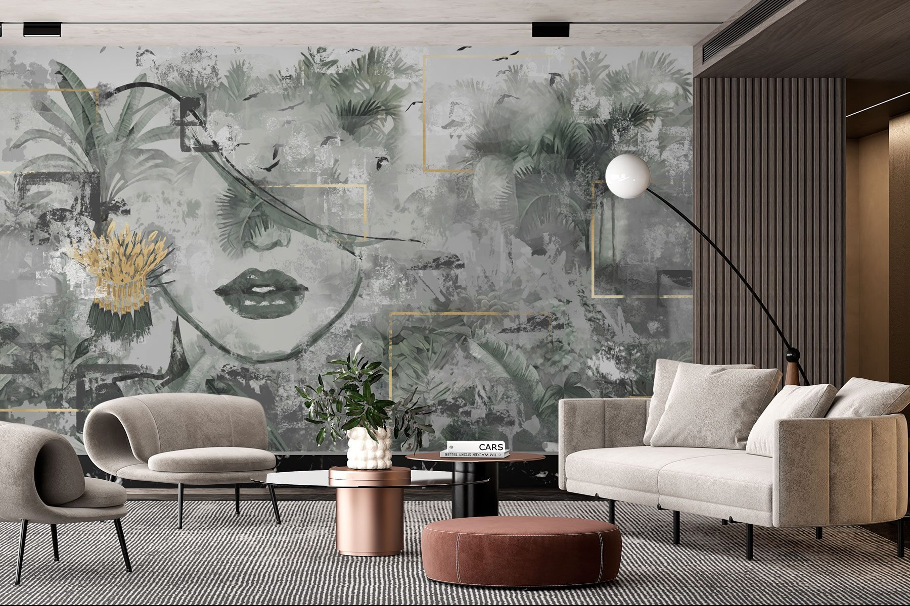 Transformați-vă spațiul cu această pictură murală uimitoare care îmbină frumos chipul unei femei cu plante vii. Imaginați-vă că pășiți într-o cameră în care natura dansează cu arta, în timp ce vă sorbiți cafeaua de dimineață. Verdele moale și texturile stratificate creează o atmosferă senină, perfectă pentru serile liniștite sau pentru întâlnirile pline de viață. Este ca și cum ai avea o grădină secretă în interior, unde fiecare privire spune o poveste. Perfectă pentru oricine iubește o atingere unică, această pictură murală nu este doar decor – este o vibrație, o sursă de conversație și un memento zilnic pentru a îmbrățișa frumusețea din jurul nostru. Cine ar fi crezut că un perete poate spune atât de multe?