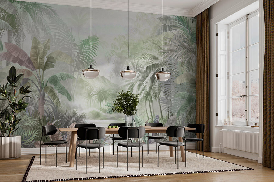 Transformați-vă spațiul într-un paradis tropical cu această pictură murală încântătoare a pădurii. Imaginați-vă că intrați în camera dvs. și simțiți instantaneu vibrațiile calme ale unei jungle senine – vegetația luxuriantă șoptește povești despre aventură și liniște. Nuanțele suave și detaliile delicate îi conferă un aer de vis, perfect pentru momentele în care doriți să scăpați de agitația cotidiană. Fie că sorbiți o cafea sau vă pierdeți într-o carte bună, această pictură murală invită la un sentiment de uimire. Este ca și cum ai avea natura chiar pe peretele tău, fără țânțari. Aduceți acasă această piesă și vedeți cum spațiul dvs. înflorește cu viață!