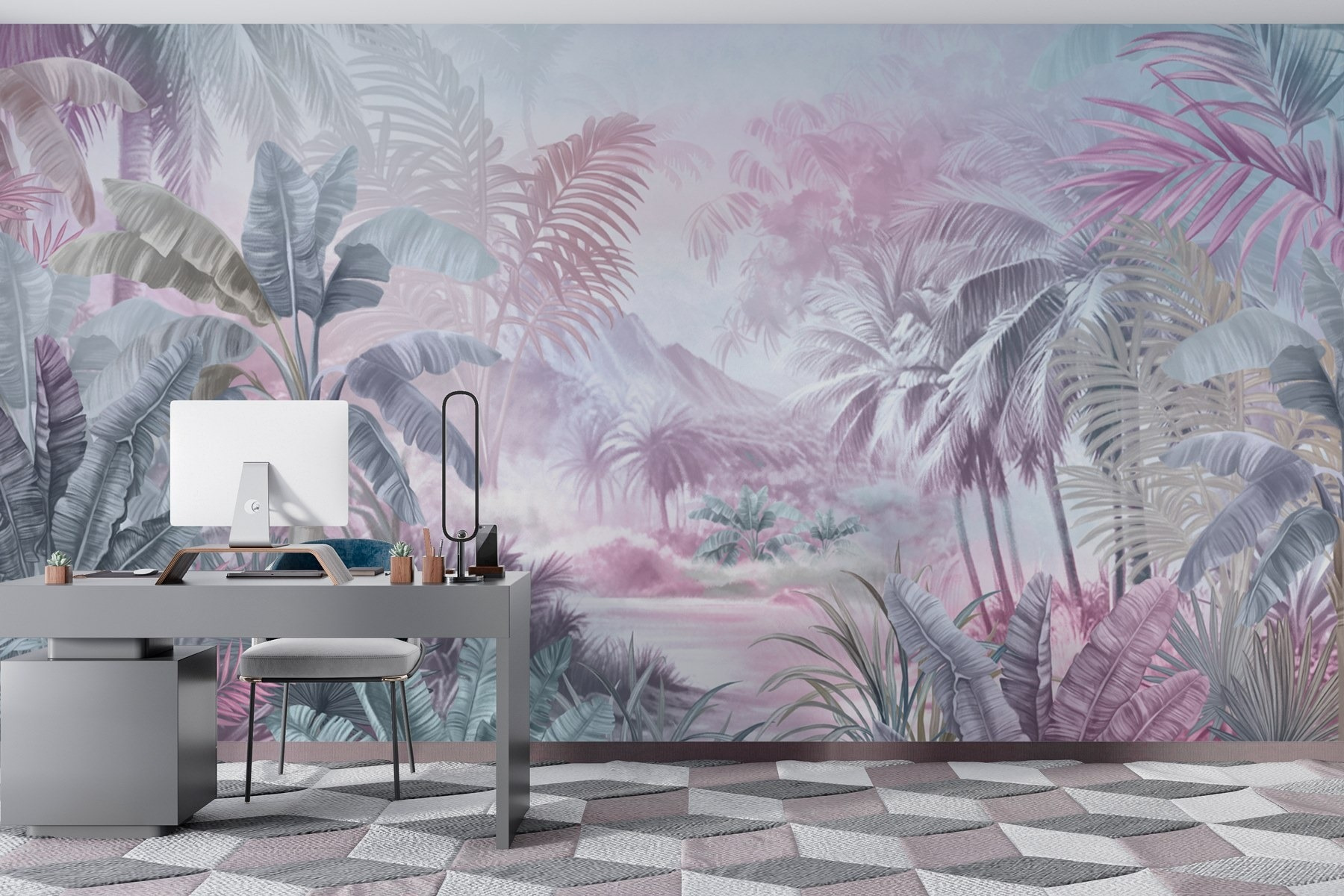 Transformați-vă spațiul într-o oază tropicală cu această pictură murală uimitoare a unei păduri pline cu palmieri. Imaginați-vă că pășiți într-un paradis senin de fiecare dată când intrați în cameră. Nuanțele pastelate delicate creează o atmosferă liniștitoare, perfectă pentru relaxare după o zi lungă. Această pictură murală nu doar că arată superb, ci șoptește relaxare. Prietenii ar putea chiar să vă întrebe dacă tocmai v-ați întors dintr-o călătorie într-o junglă îndepărtată. Perfectă pentru camerele de zi sau dormitoare, este ca și cum ai aduce un pic de natură în interior. Cine nu ar vrea să se simtă ca într-o vacanță perpetuă? Imaginează-ți – sorbind o băutură în timp ce ești înconjurat de vegetație luxuriantă, chiar dacă este vorba doar de ceai de mușețel și o carte bună. Bucurați-vă de evadare!