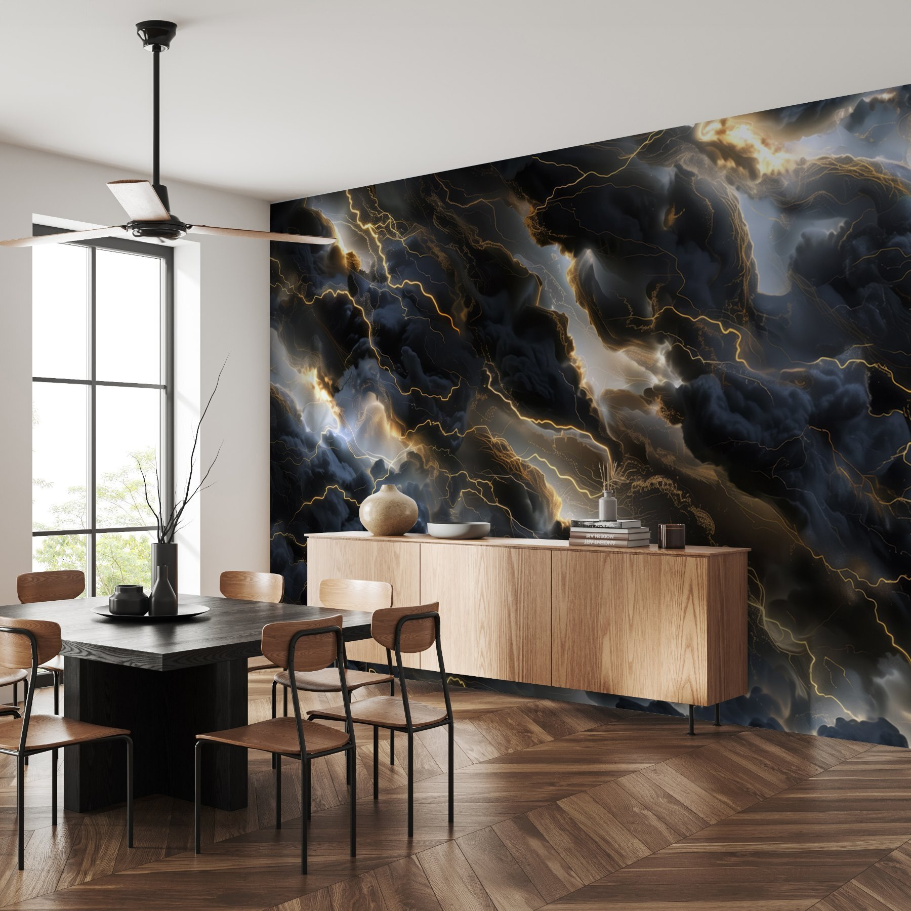 Transformați-vă spațiul cu această pictură murală uimitoare, “Nori negri cu fulgere”. Este ca și cum ai invita o furtună dramatică chiar în casa ta – fără covorul ud. Imaginați-vă acest lucru: vă sorbiți cafeaua, cerul este puțin mohorât afară, dar înăuntru, strălucirea fulgerelor electrizante străjuiește norii, adăugând o notă de emoție. Nu este doar un perete; este o declarație. Fiecare privire poate stârni imaginația și conversația. Perfect pentru camerele de zi sau chiar pentru un loc confortabil de citit – sperați doar ca cartea dvs. să nu fie măturată de vibrațiile furtunoase! Aduceți acasă acest farmec unic și vedeți cum pereții dvs. prind viață.