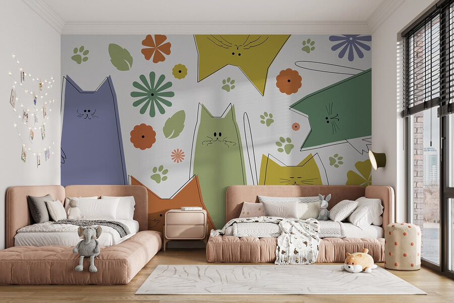 Aduceți un strop de fantezie în orice cameră cu această pictură murală încântătoare care prezintă un echipaj ciudat de pisici care se joacă printre flori și frunze vibrante. Imaginați-vă aceste fețișoare fermecătoare care își fac apariția în timp ce sar de pe un perete pe altul, energia lor jucăușă luminându-vă spațiul. Perfect pentru iubitorii de pisici – cine nu vrea ca decorul său să reflecte un pic de personalitate? Este ca și cum ai avea un animal de companie, fără a fi nevoit să se ocupe de litieră! Imaginați-vă doar seri confortabile într-un paradis plin de pisici, sorbind ceai și absorbind acele vibrații pufoase. Această pictură murală nu doar decorează, ci spune o poveste de bucurie și joacă, făcând ca orice spațiu să se simtă ca acasă.