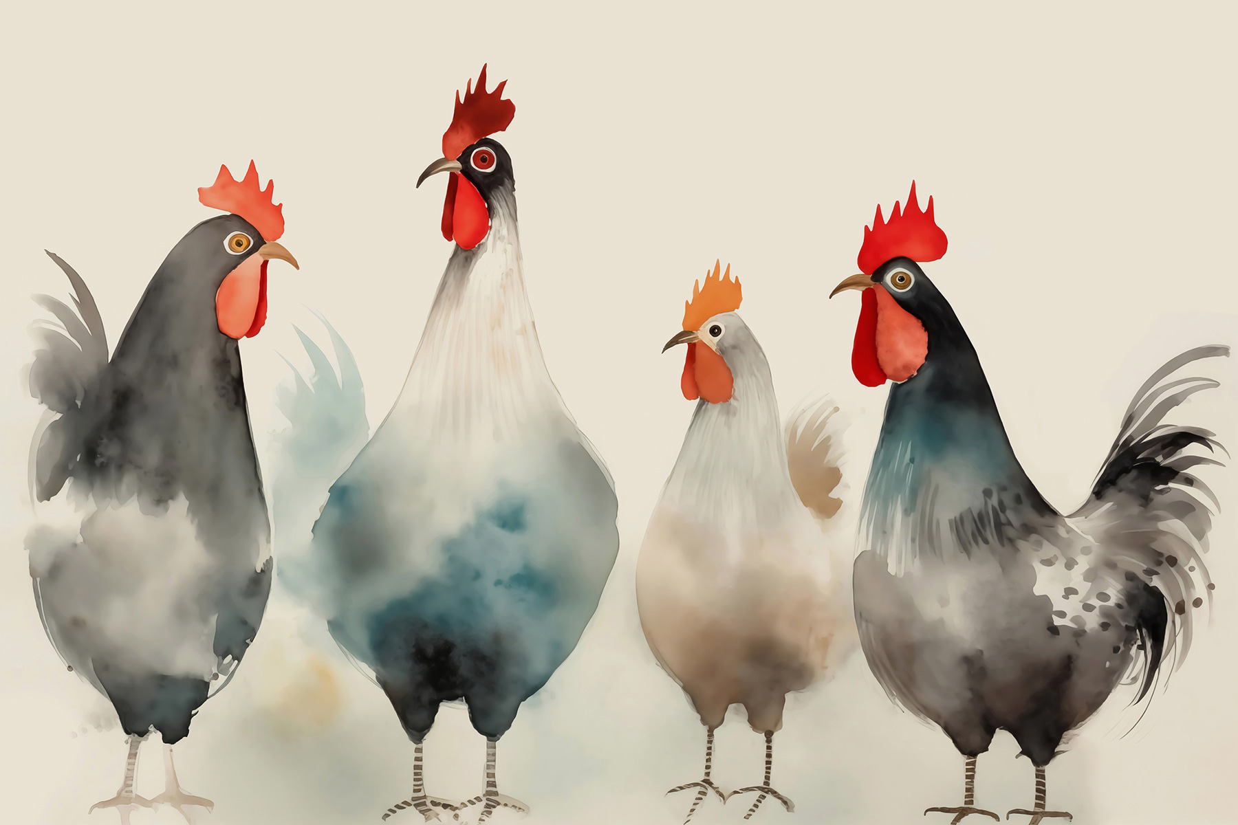 Înveseliți orice spațiu cu această pictură murală încântătoare, care prezintă o gașcă ciudată de găini, afișând pene roșii și albe ca și cum tocmai ar fi ieșit de pe o pistă de modă. Personalitățile lor pline de viață adaugă un strop de umor, transformând un perete obișnuit într-o sursă de conversație. Imaginați-vă că intrați într-o cameră și sunteți întâmpinați de acești prieteni cu pene – este ca și cum ați avea o minifermă chiar acasă! Perfectă pentru o bucătărie, o cameră de joacă sau oriunde este nevoie de puțină veselie, culorile blânde ale acestei picturi murale și atmosfera jucăușă vor încălzi inimile cu siguranță. În plus, cine nu ar zâmbi la o echipă de găini? Este timpul să urați bun venit acestui decor fermecător!