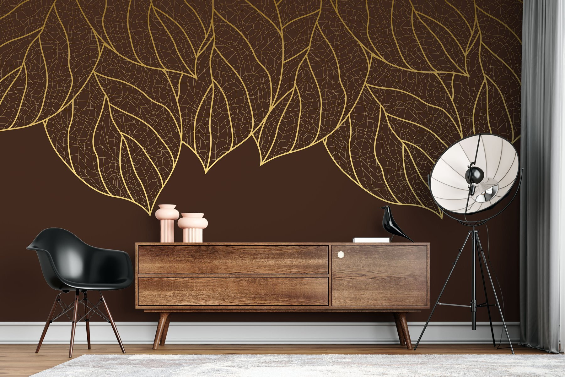 Transformați orice cameră cu această pictură murală fermecătoare care prezintă un grup minunat de frunze pe un fundal maro bogat. Este ca și cum ai aduce o mică pădure chiar în casa ta. Imaginați-vă sorbind o cafea în timp ce vă înmuiați în aceste frunze vibrante – vă vor face să vă simțiți ca într-o cafenea confortabilă din pădure. Perfectă pentru o cameră de zi sau un birou, această pictură murală adaugă căldură și o explozie de natură. Fie că sunteți un iubitor înrăit de plante sau aveți nevoie doar de un strop de pământ, este o sursă încântătoare de conversație și cui nu-i place o poveste bună despre cum să se piardă în aer liber?