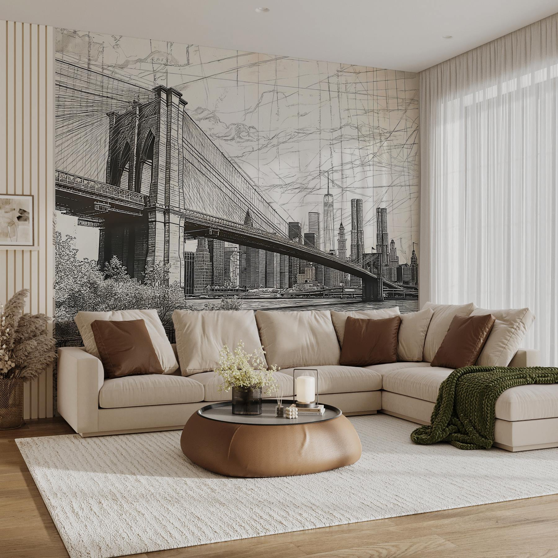 Transformați-vă spațiul cu această pictură murală captivantă a unui pod și a unui peisaj urban, o piesă care aduce o doză de farmec urban direct pe pereții dvs. Imaginați-vă că o priviți în timp ce vă sorbiți cafeaua de dimineață – cu un aer de aventură, la fel ca în plimbările de duminică de-a lungul râului. Liniile complicate surprind agitația și agitația vieții urbane, dar o fac să pară senină. Este perfectă pentru a stârni conversații sau pur și simplu pentru a visa cu ochii deschiși la locurile în care ați fost sau doriți să mergeți. Lăsați această pictură murală să fie fundalul momentelor dvs. de zi cu zi – cine știe, s-ar putea să vă inspire următoarea mare aventură!