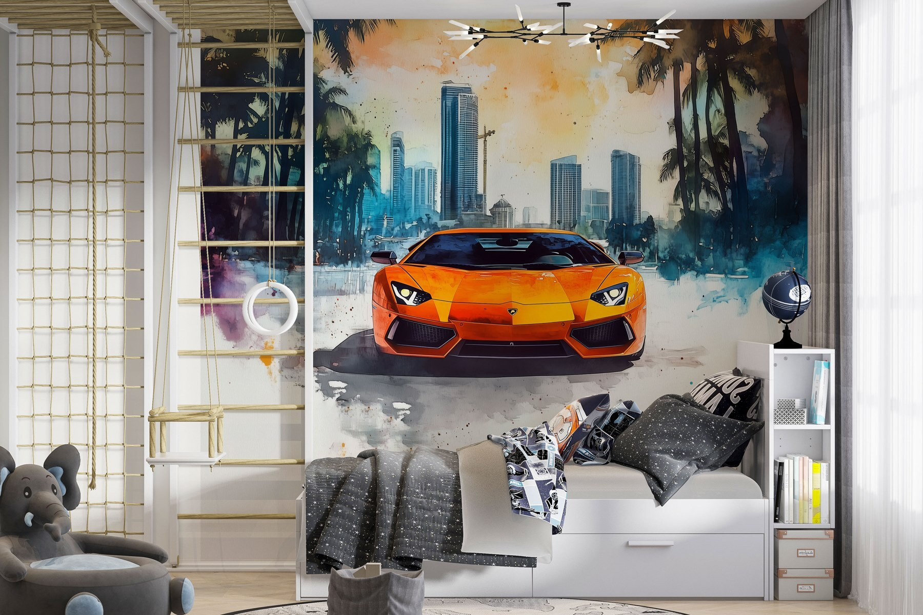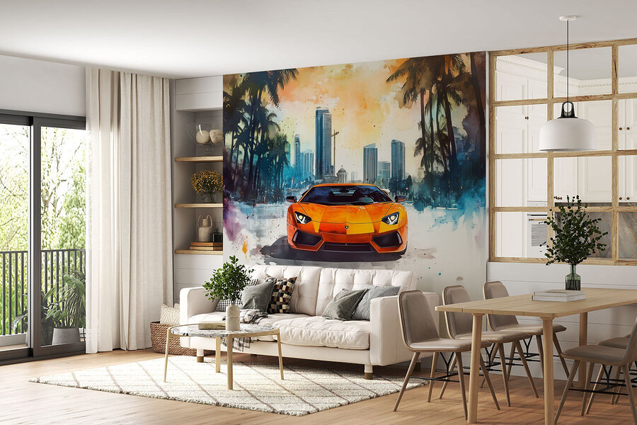 Ridicați energia în orice cameră cu această pictură murală izbitoare care prezintă o mașină sport portocalie care se deplasează pe un fundal înzăpezit. Este ca o explozie de soare într-o zi răcoroasă – perfectă pentru momentele în care iarna pare un pic prea lungă. Imaginați-vă sorbind cacao fierbinte în timp ce admirați această operă de artă vibrantă! Liniile elegante ale mașinii și fulgii moi de zăpadă creează un contrast uimitor. Fie că sunteți un pasionat de mașini sau pur și simplu iubiți decorul unic, această pictură murală stârnește conversații și face o declarație. Transformați un perete plictisitor într-o evadare antrenantă care aduce o notă de emoție vieții de zi cu zi. Perfect pentru o cameră de jocuri, birou sau oriunde aveți nevoie de o doză de aventură!