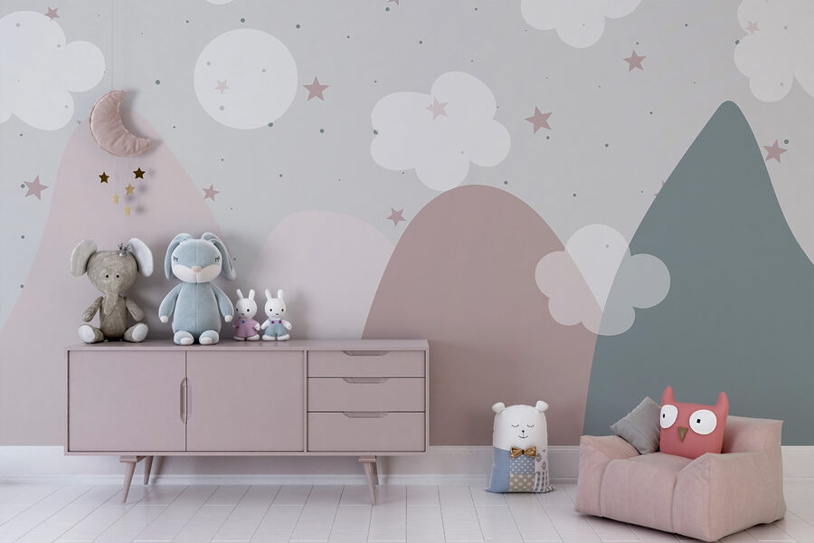 Transformați orice spațiu într-o evadare de vis cu această pictură murală fermecătoare, “Peisaj cu nori și stele”. Imaginați-vă că cei mici privesc aceste vârfuri moi, pastelate, nori pufoși și stele sclipitoare în timp ce adorm. Este ca o invitație de a explora o lume capricioasă chiar din camera lor! Culorile blânde creează un sentiment de calm, făcându-l perfect pentru momentele de joacă sau de liniște. Imaginează-ți ora poveștilor sub acest cer fermecător – cu siguranță va declanșa niște aventuri pline de imaginație. În plus, cui nu i-ar plăcea o priveliște care îi face să se simtă ca și cum ar lenevi printre nori?