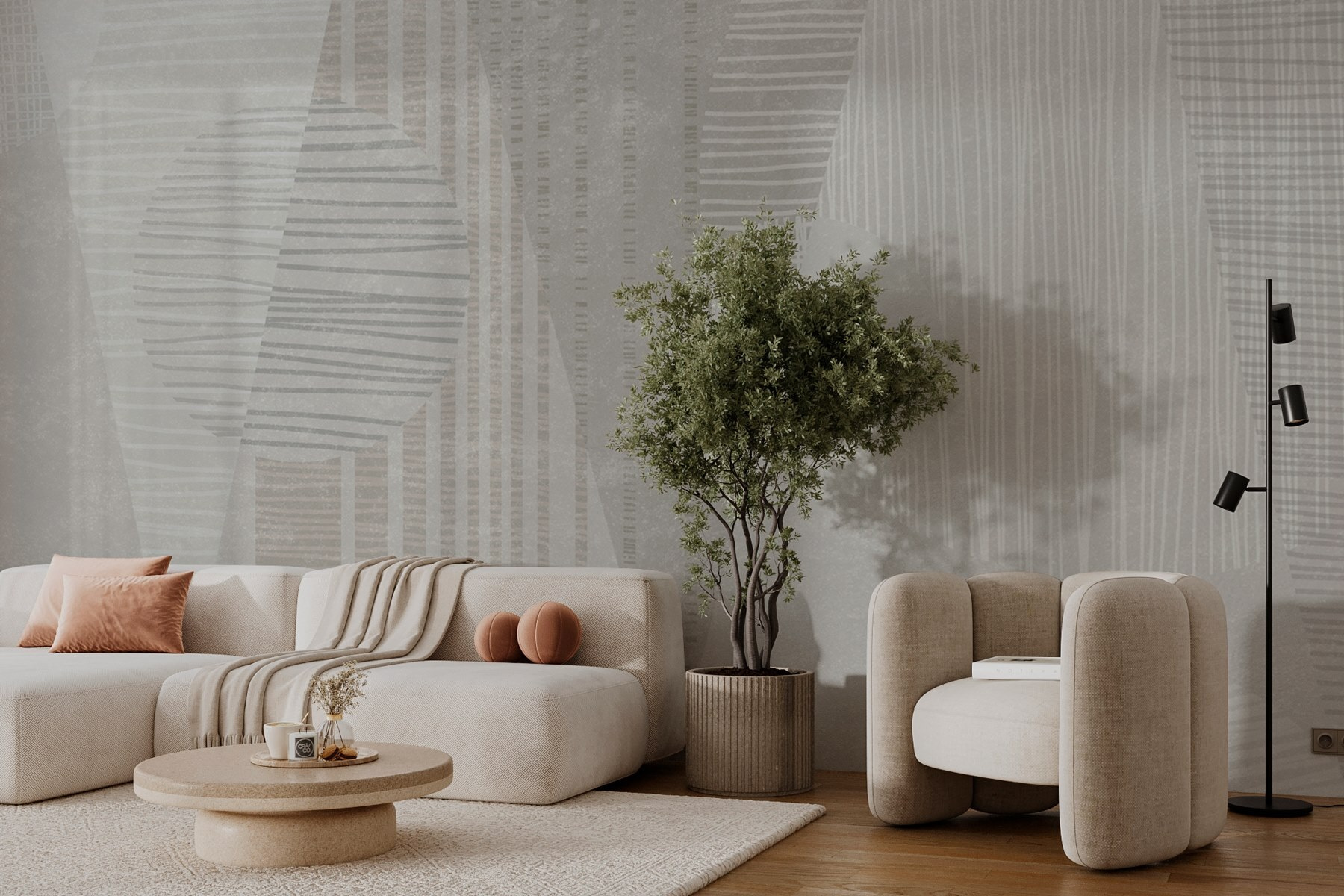 Transformați orice spațiu cu această minunată pictură murală de perete cu culori blânde, liniștitoare și modele delicate. Imaginați-vă că pășiți într-o cameră în care pereții șoptesc confort și stil. Formele geometrice jucăușe se amestecă fără efort, creând un vibe modern, fără a fi prea ostentativ. Perfect pentru sufragerii confortabile sau dormitoare senine, acesta invită la căldură și creativitate. Imaginați-vă că vă relaxați cu o carte bună, pătura preferată și această pictură murală care dă tonul. Este ca și cum ai avea o operă de artă care pare în același timp proaspătă și atemporală – un adevărat starter de conversație!