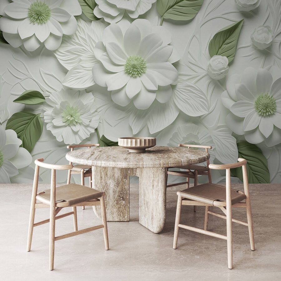 Transformați orice cameră într-o oază de seninătate cu această murală uimitoare cu flori delicate albe și verzi. Este ca și cum ai aduce o grădină înăuntru, fără insectele enervante. Imaginați-vă sorbind cafea într-un colț luminat de soare, înconjurat de flori care nu se ofilesc niciodată. Desenele complicate îmbină eleganța cu o notă de fantezie, făcând ca fiecare privire să se simtă ca o mini evadare. Perfect pentru acel perete gol care șoptește după puțină dragoste sau chiar un accent pentru a da un plus de jazz lucrurilor. Frumusețea naturii acasă, fără a fi nevoie de degetul mare – cine nu și-ar dori asta?