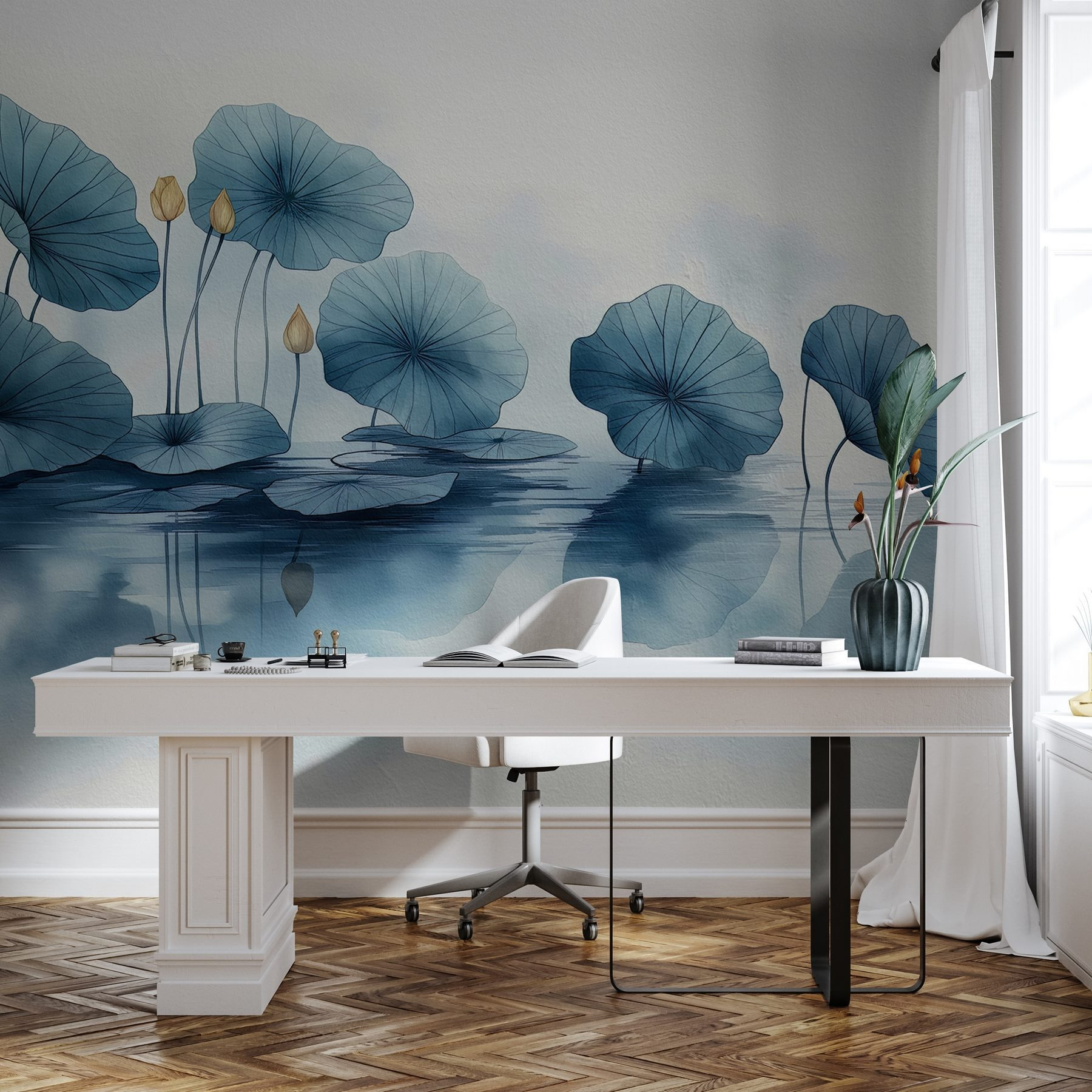 Transformați orice spațiu cu această pictură murală încântătoare cu nuferi care plutesc grațios în albastrul moale. Imaginați-vă că intrați într-o cameră și simțiți instantaneu că ați pășit într-un iaz senin – serios, cine nu are nevoie de acest vibe? Efectul delicat de acuarelă aduce un farmec liniștit, făcându-l perfect pentru un dormitor sau un colț de lectură confortabil. Imaginați-vă sorbind ceai, visând cu ochii deschiși în timp ce scena liniștită vă calmează mintea. Este ca arta naturii, dar fără insecte și noroi! Această pictură murală va face ca pereții să vorbească despre stilul dvs. unic, adăugând în același timp un strop de liniște și o notă de fantezie.