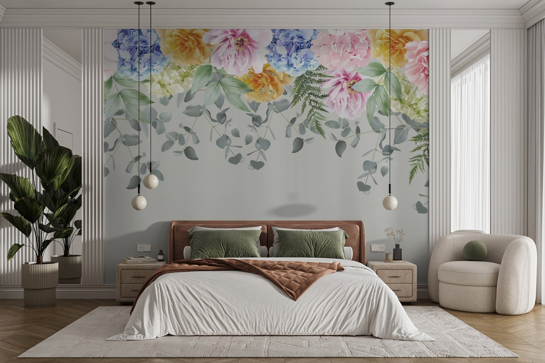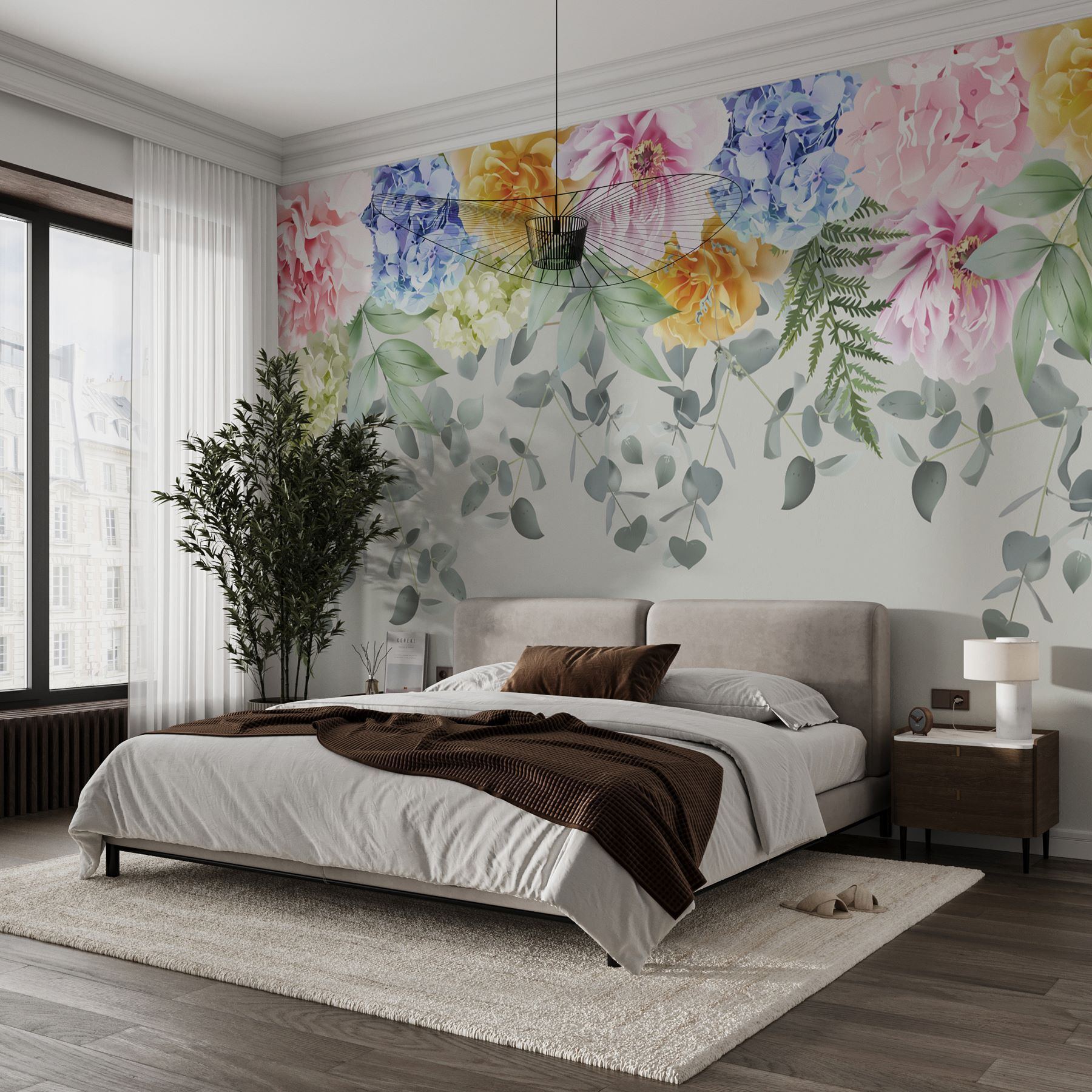 Transformați orice cameră într-un paradis floral cu această pictură murală uimitoare care prezintă un grup vibrant de flori și frunze. Imaginați-vă că intrați în spațiul dvs. și sunteți întâmpinați de bujori înfloriți și hortensii delicate, aproape ca și cum natura a decis să ia loc pe peretele dvs.! Perfectă pentru a adăuga o notă de căldură și veselie, este o sursă excelentă de conversație – genul de pictură murală care îi face pe oameni să se oprească și să zâmbească: “Wow, este atât de drăguță!” În plus, cui nu i-ar plăcea un pic de bucurie inspirată din natură chiar la el acasă? Fie că este în camera de zi sau într-un colțișor confortabil, această pictură murală aduce viață și culoare, transformând monotonia în fabulos. Imaginați-vă cum vă relaxați în acest spațiu, înconjurați de aceste flori frumoase – ahh, fericire!