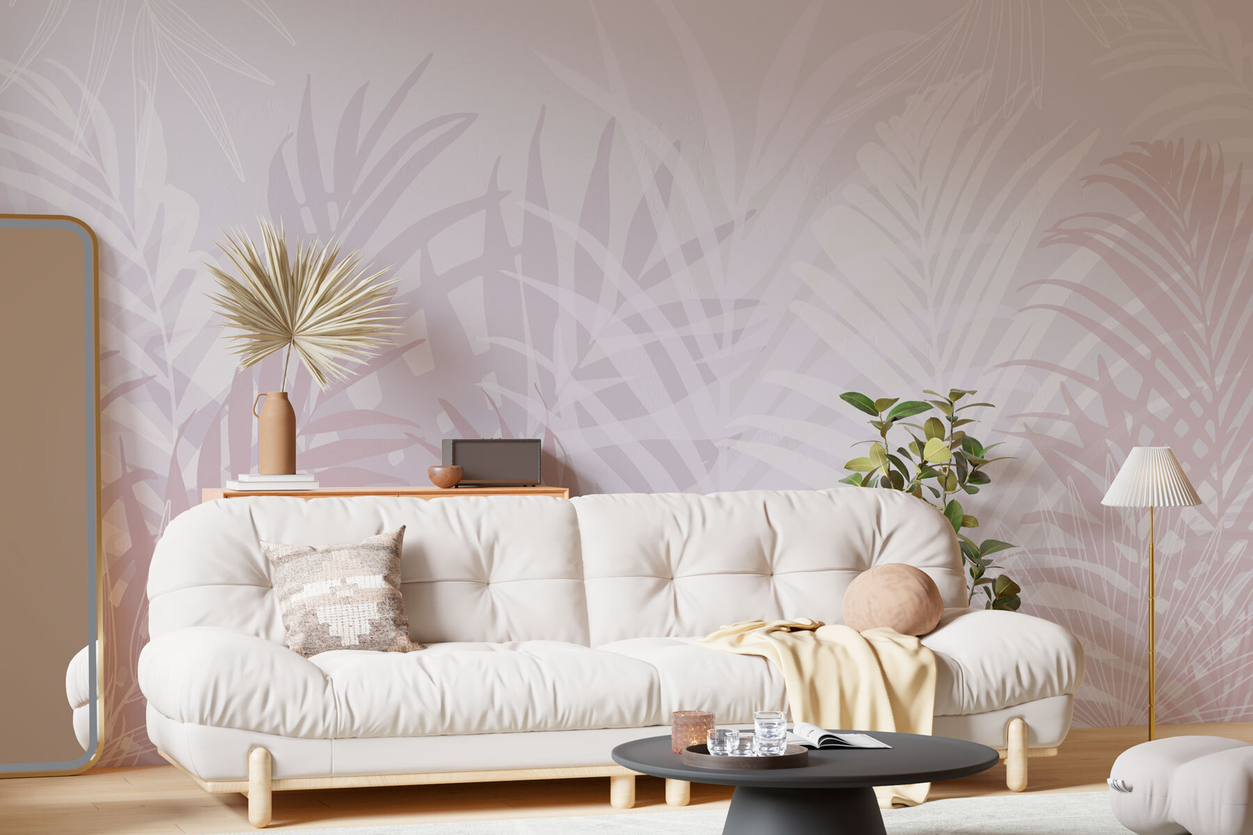 Transformați orice cameră într-o oază tropicală cu această frumoasă pictură murală cu frunze albe și roz. Imaginați-vă-l: un fundal senin care șoptește relaxare. Acest design nu este doar pentru spectacol; el aduce exteriorul înăuntru, creând o atmosferă liniștitoare perfectă pentru a savura o cafea într-o dimineață leneșă de duminică sau pentru a găzdui o cină confortabilă. Culorile blânde pot face chiar și cele mai mici spații să pară deschise și primitoare. Un mic strop de natură în decorul tău? Da, vă rog! Este o sursă de conversație, un stimulent pentru starea de spirit, și cine nu vrea asta?