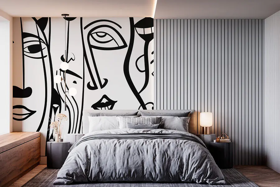 Transformați-vă spațiul cu această pictură murală captivantă alb-negru care prezintă un amestec de fețe expresive. Este ca și cum ai avea o galerie de artă chiar în sufrageria ta, dar fără vibe pretențios. Liniile îndrăznețe și formele jucăușe invită la conversație – imaginează-ți prietenii care se opresc la mijlocul propoziției pentru a o admira, încercând în același timp să descifreze emoțiile înghețate în aceste expresii ciudate.