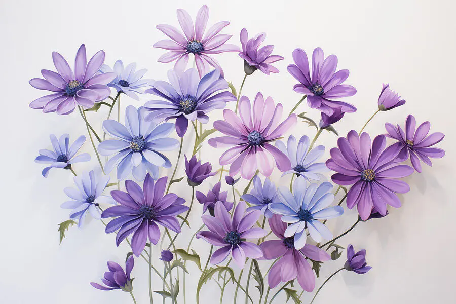 Transformați orice spațiu cu uimitorul “Fototapet Group of Purple and Blue Flowers”! Imaginați-vă că intrați într-o cameră și vă simțiți instantaneu înălțați de florile vibrante așezate pe perete. Amestecul jucăuș de flori mov și albastre izbucnește cu personalitate, aproape ca și cum ar avea o petrecere și te-ar invita să te alături.